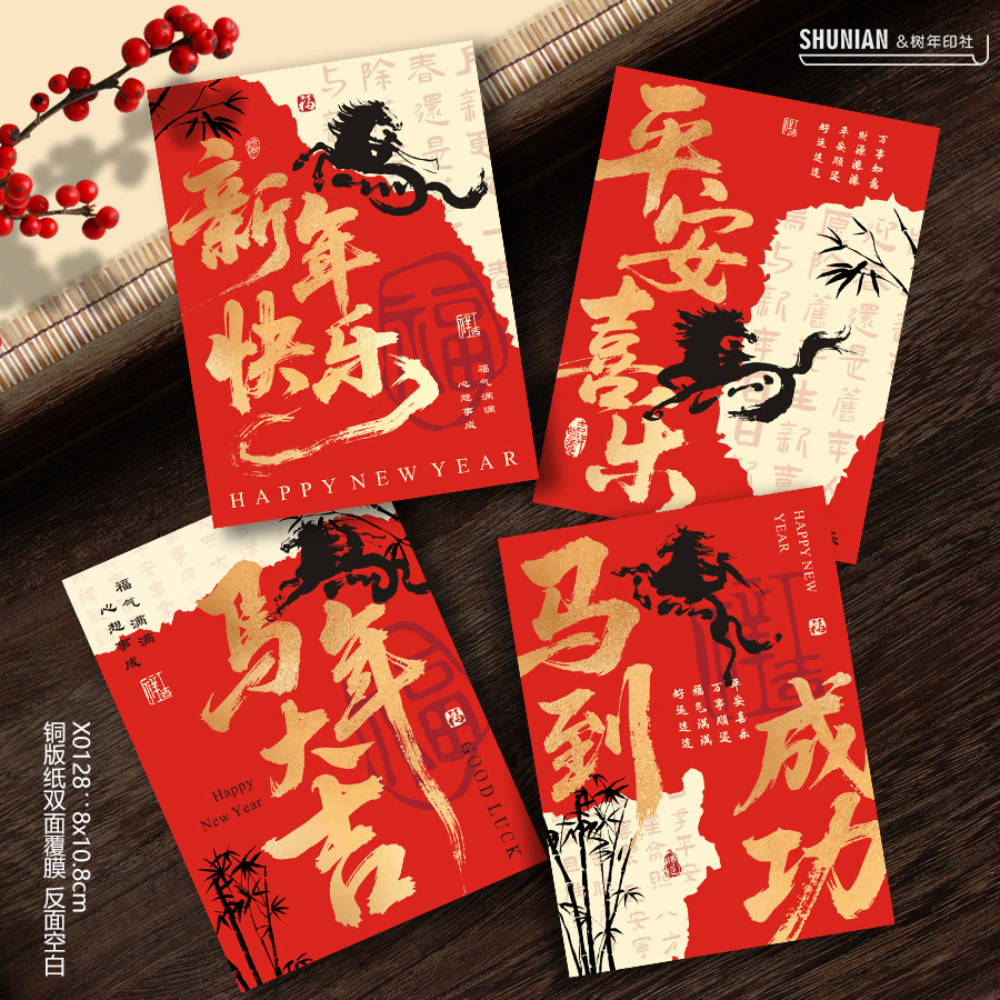 📚 复古2026马年贺卡新年小卡片定制马年大吉祝福卡纸马上发财贺年卡