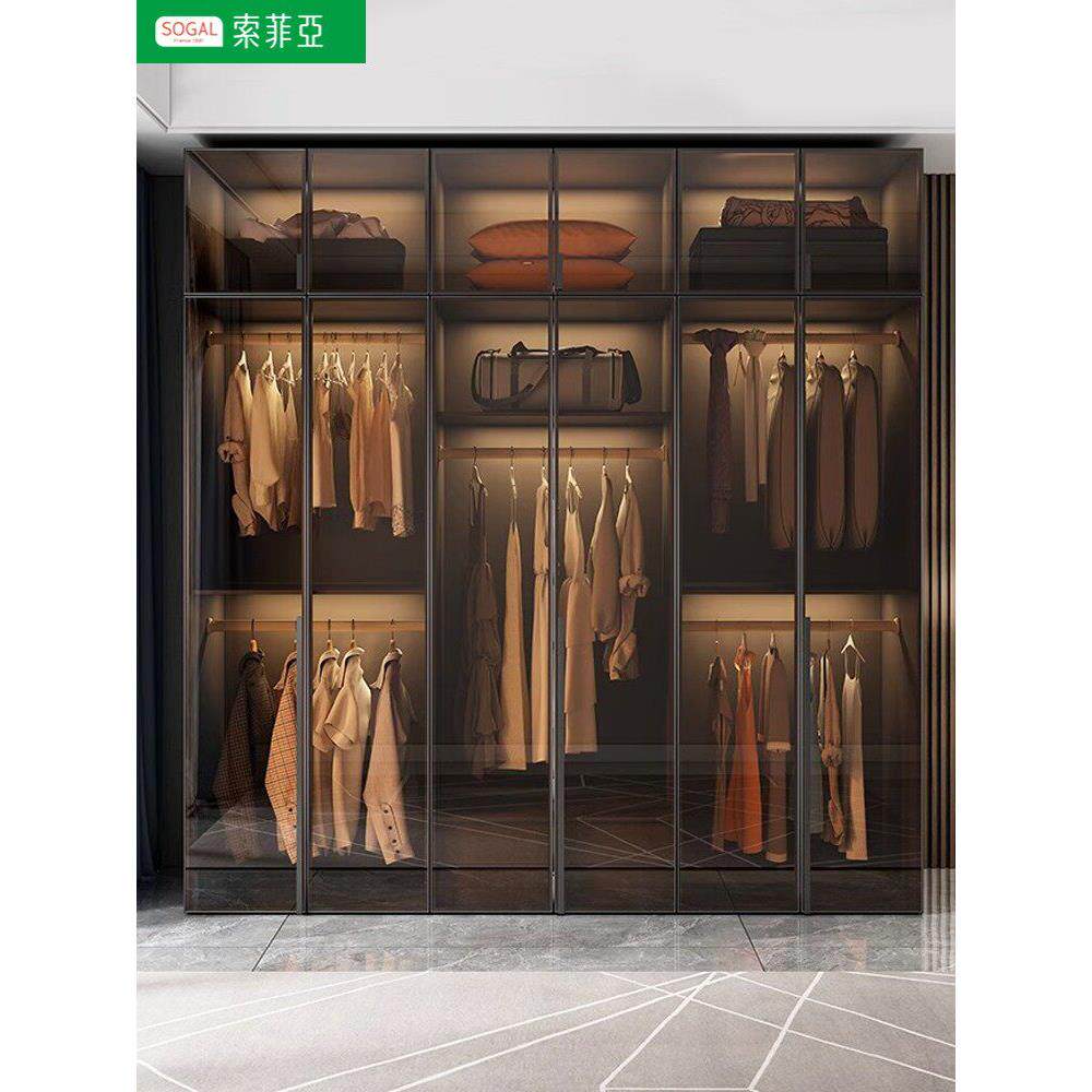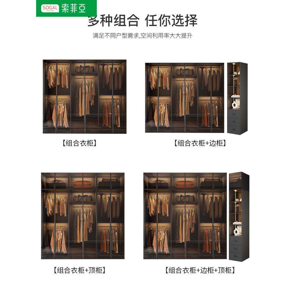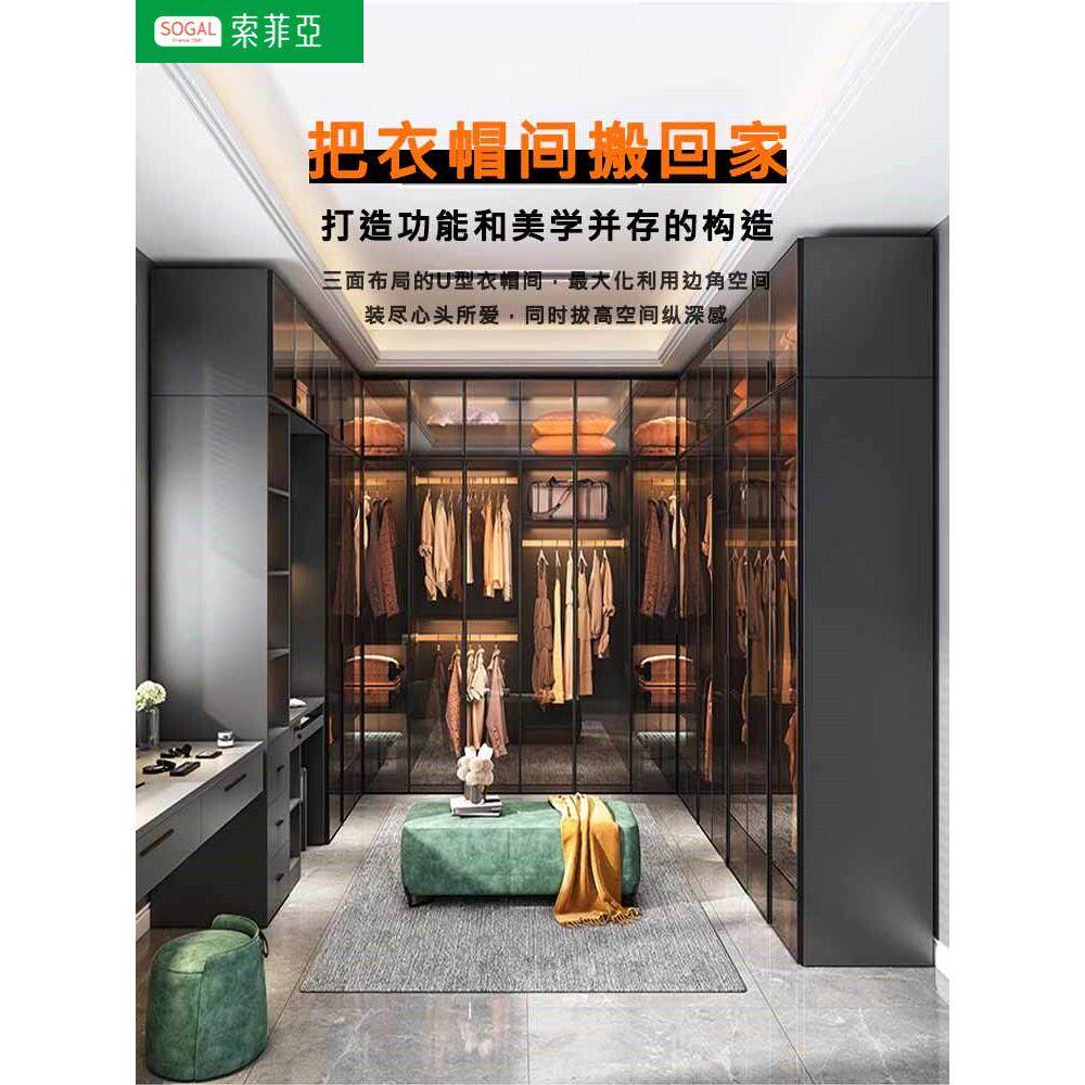 📚 索菲亚实木衣柜卧室家用玻璃门L型现代轻奢转角衣帽间收纳柜子组