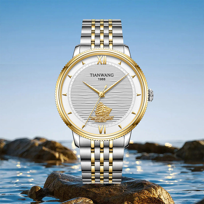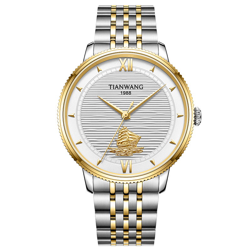 📚 天王表18K金黄金浮雕一帆风顺男女士商务自动机械手表51562