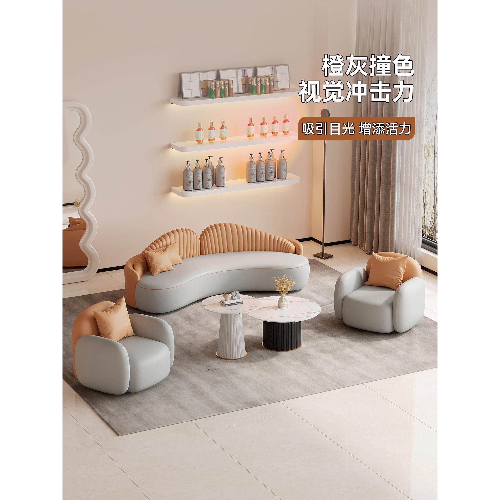 📚 美容院弧形沙发休息区接待客厅网红服装店办公室会客沙发现代简约