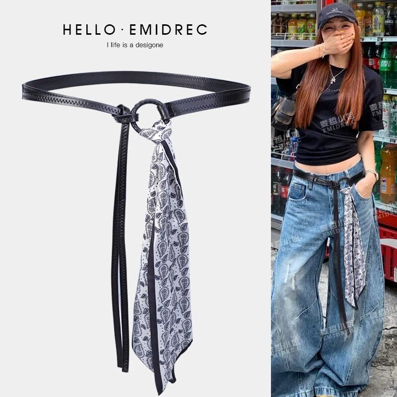 📚 现货丝巾腰带女丝带腰链皮带嘻哈朋克复古美式装饰配牛仔裤带红色