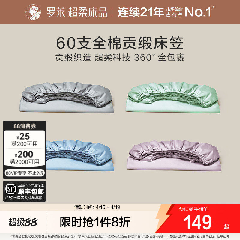 📚 罗莱家纺60支床笠床单纯棉全棉拆单件床罩学生宿舍单人床垫保护罩