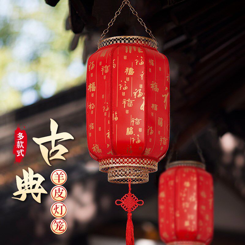 📚 2025新款电池j羊皮大红灯笼别墅庭院挂饰免插电款阳台大门口一对