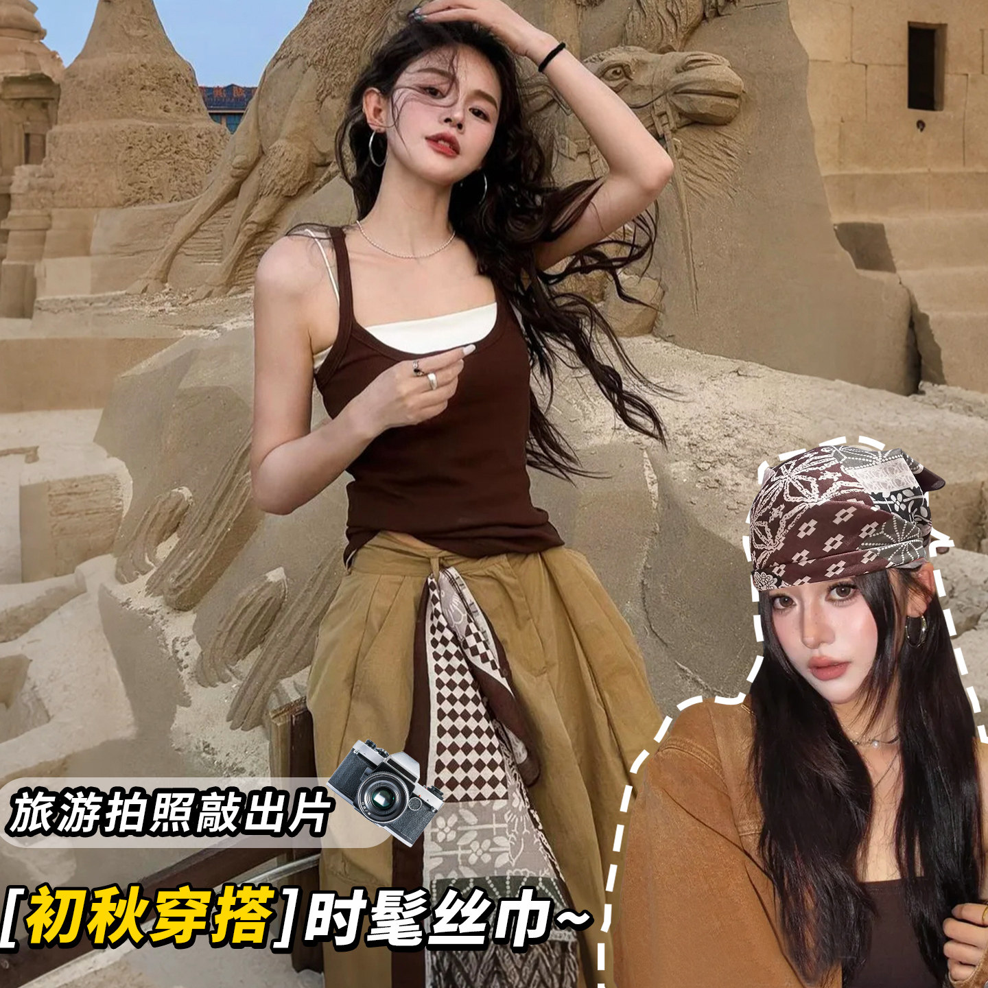 📚 复古花纹丝巾女系脖高级感方巾2025新款搭配衬衫头巾装饰腰带屁帘