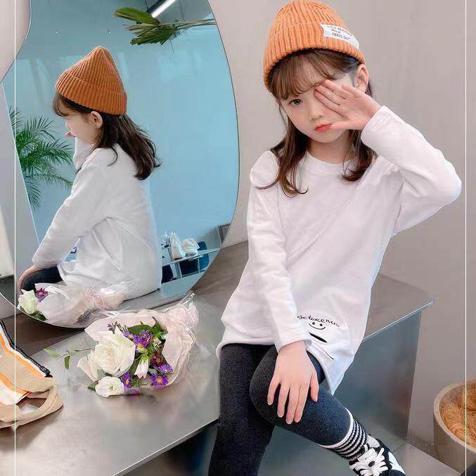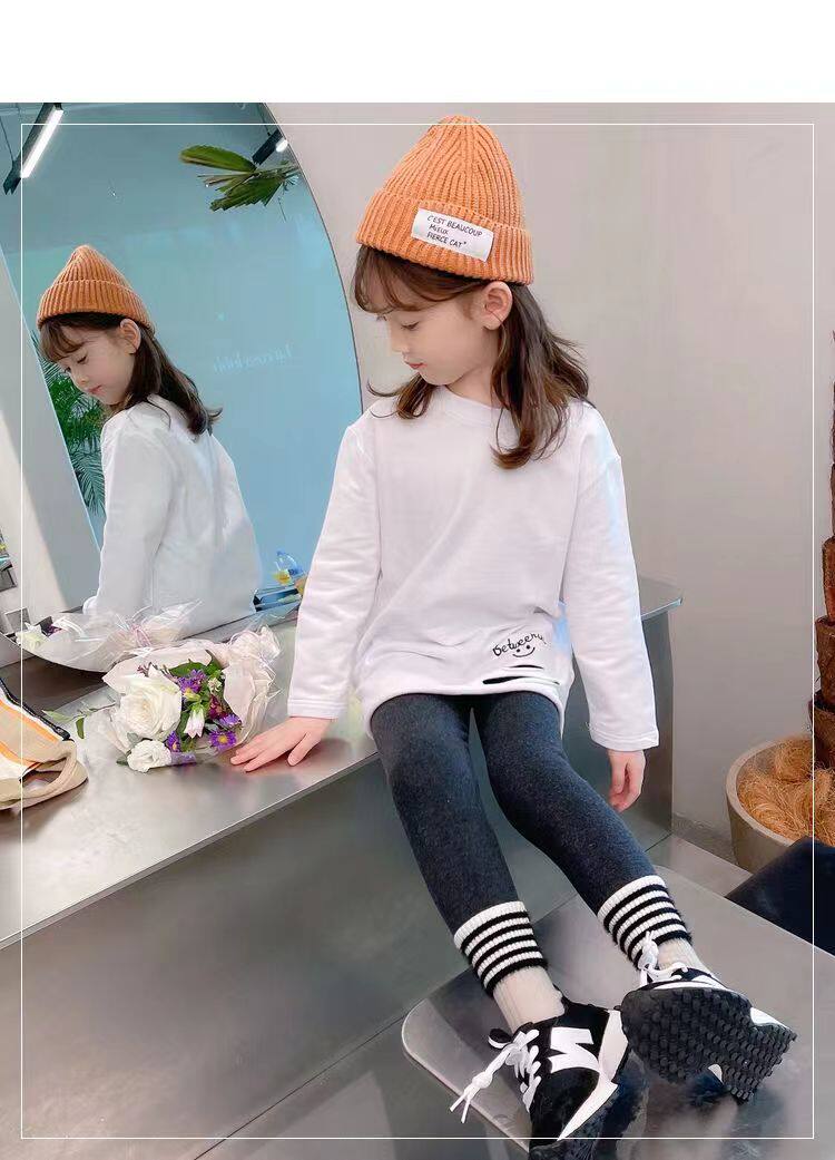 📚 女童加绒打底衫秋冬装中大儿童宽松圆领中长款洋气破洞长袖t恤潮