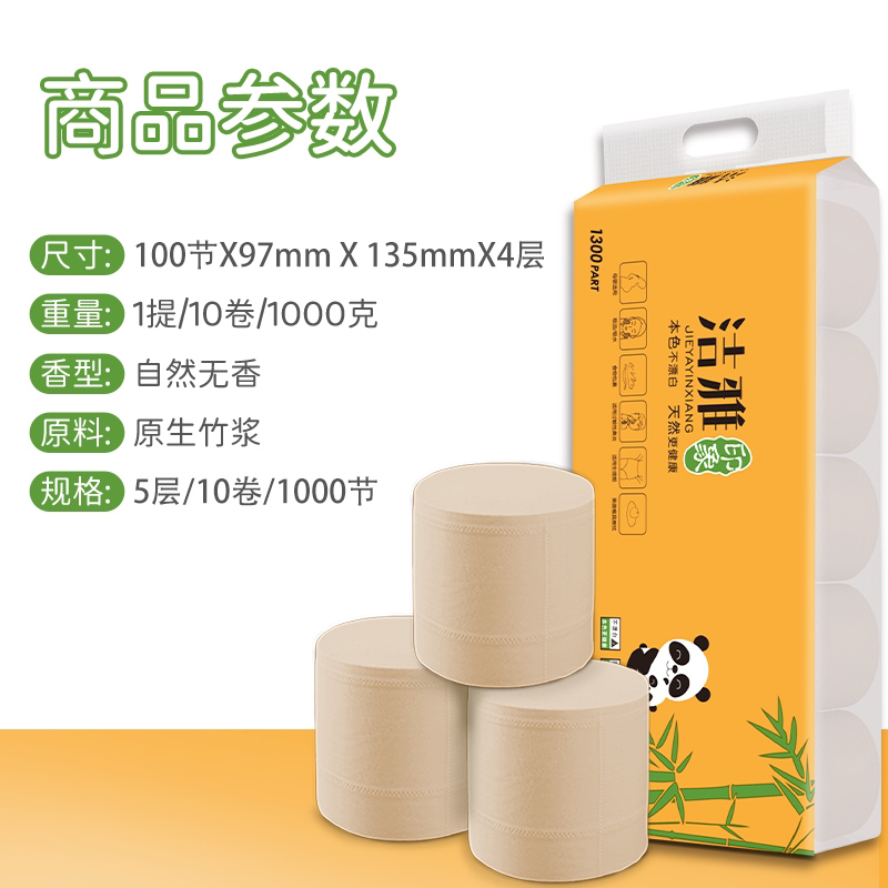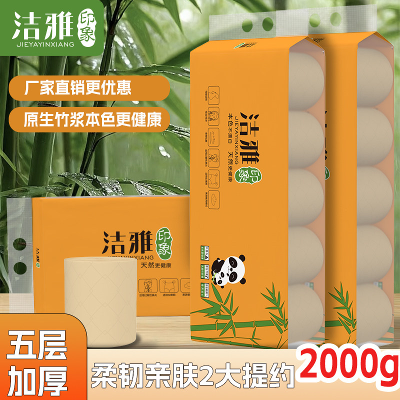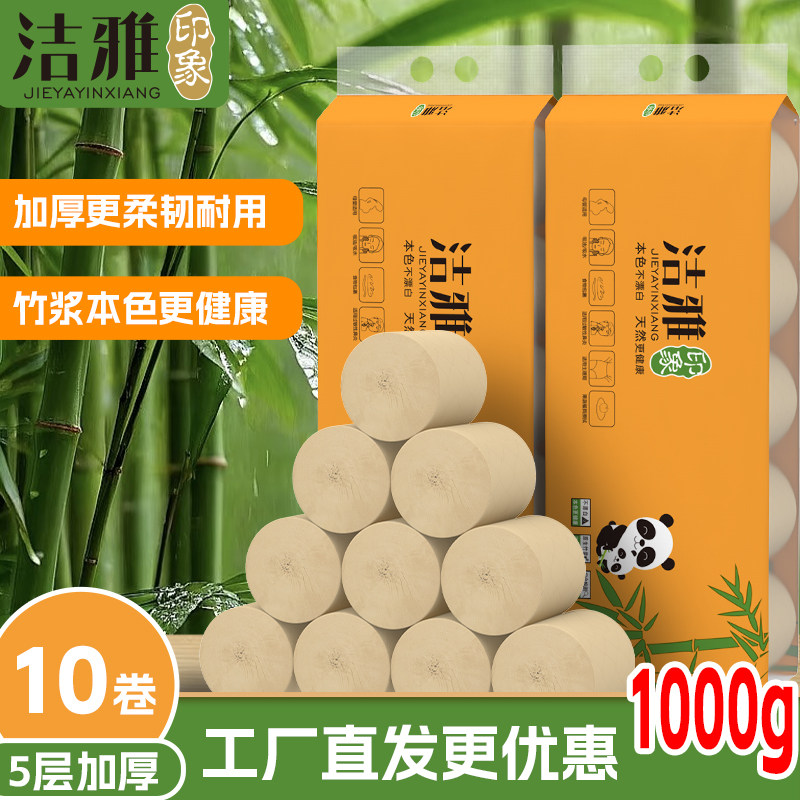 📚 洁雅本色实心卷纸 家用原色卷筒纸实惠装卫生纸整箱批发原生木浆