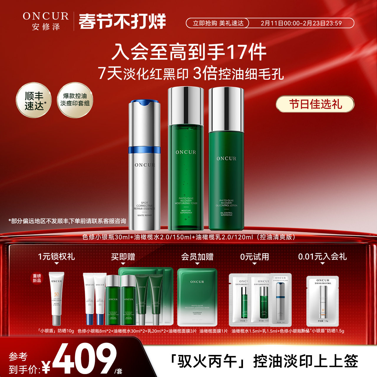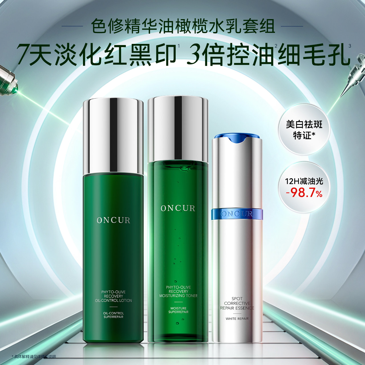 📚 安修泽色修小银瓶油橄榄水乳套装控油保湿舒缓修护淡印美白修红