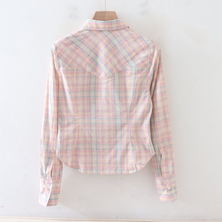 📚 C04087日单以挂拍图为主新款单排扣微宽松女格子修身长袖纯棉衬衫