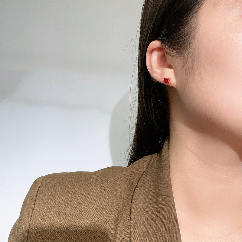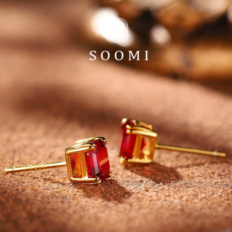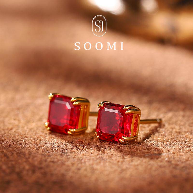 📚 【SOOMI潮奢】925银1.4ct培育鸽血红宝石耳钉简约百搭耳环饰品女