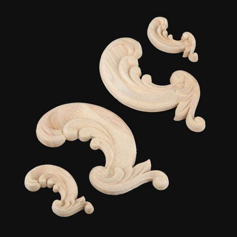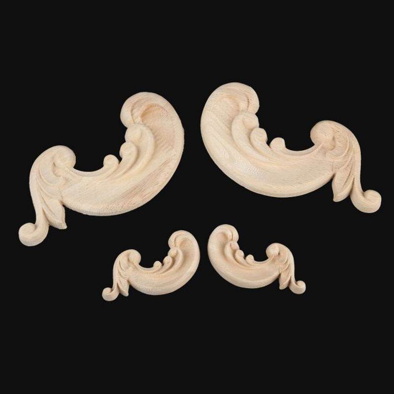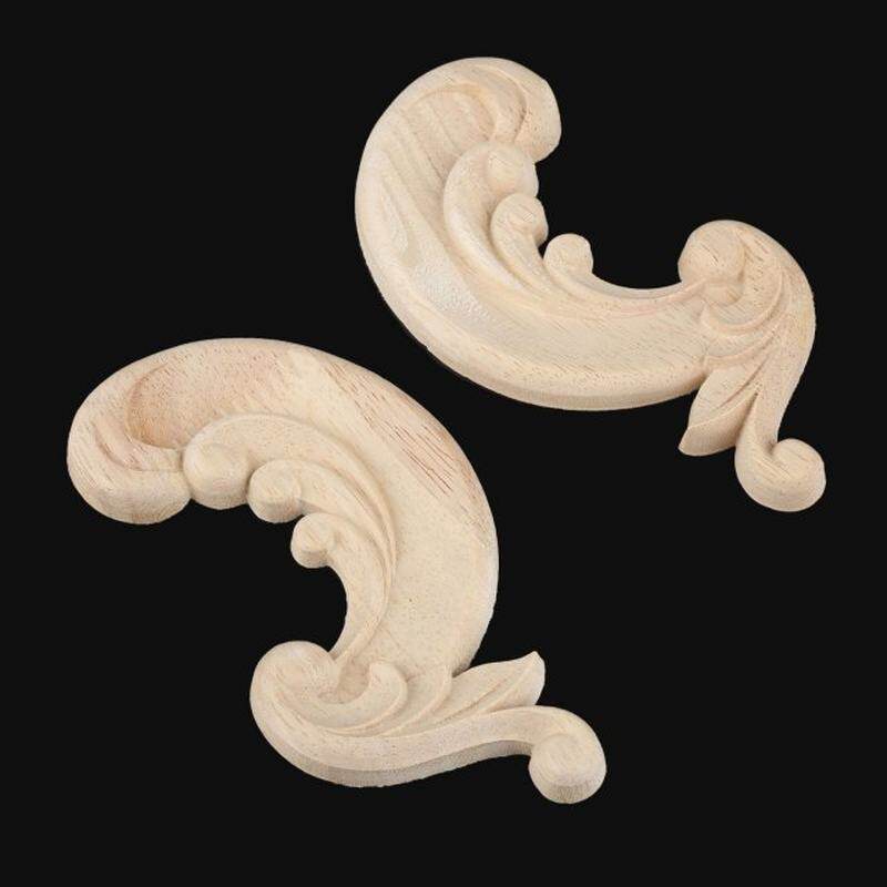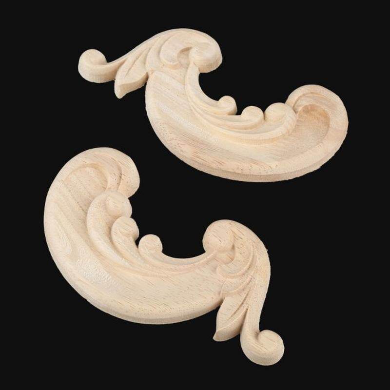 📚 2Pcs Decorative Wood Appliques Unpainted Wood Oak Carved Flo