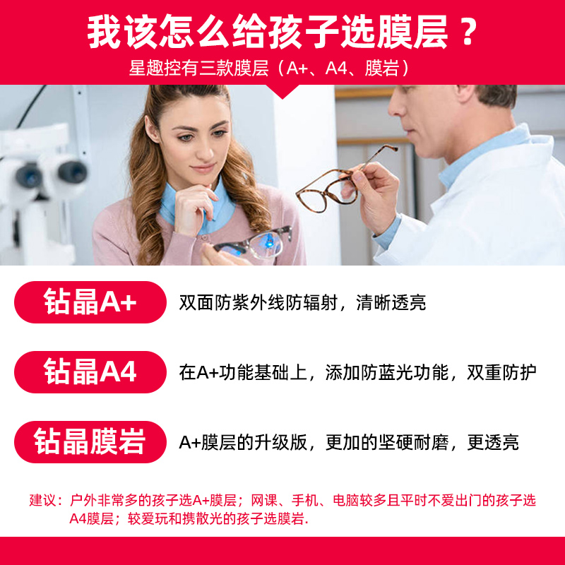 📚 依视路星趣控离焦防控功能眼镜片学生钻晶膜岩耐磨防蓝光儿童近视