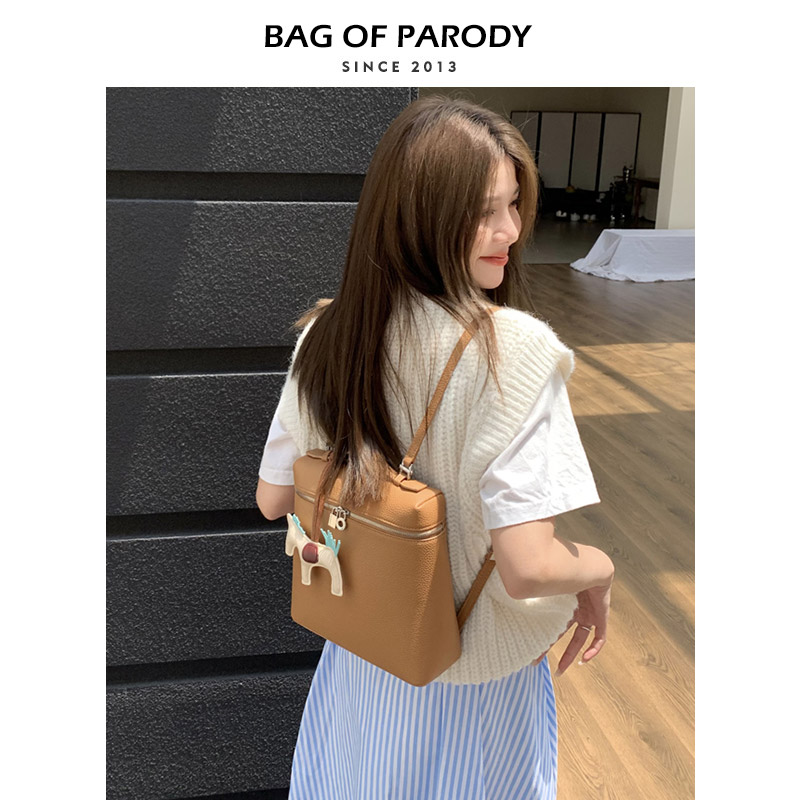 📚 Bag of parody loro饭盒包LP双肩包女软皮大容量高级感piana背包
