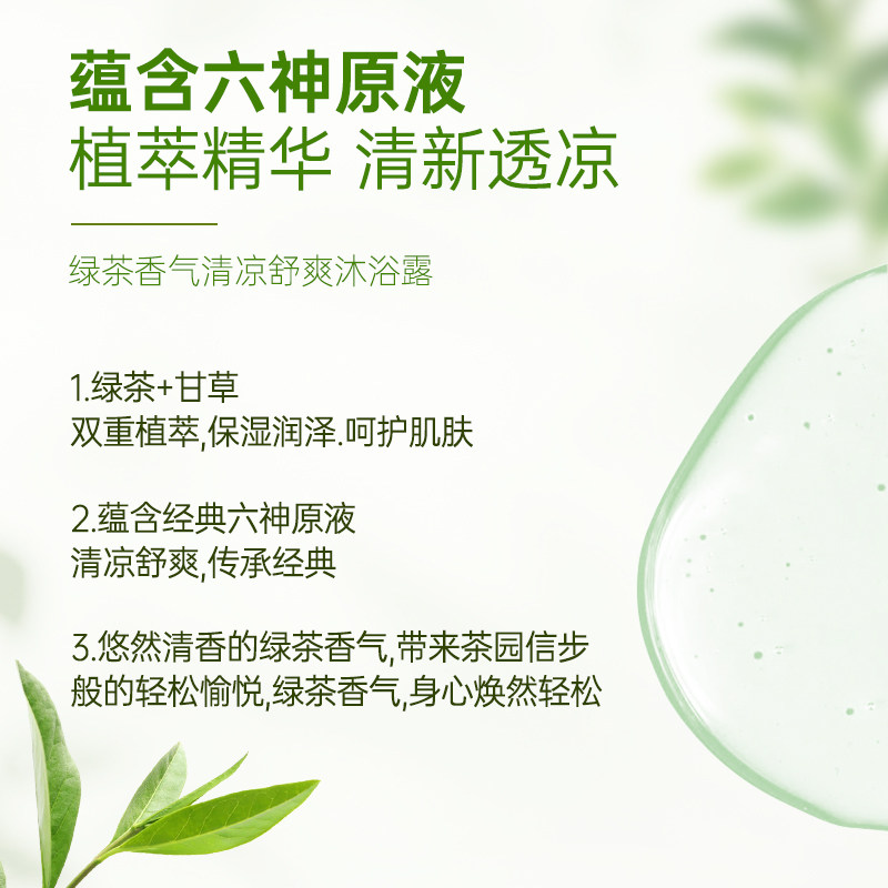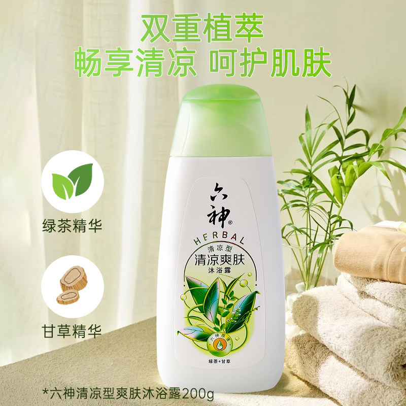 📚 六神沐浴露劲凉酷爽正品清爽不油腻绿茶甘草200g栀子果玉竹700g