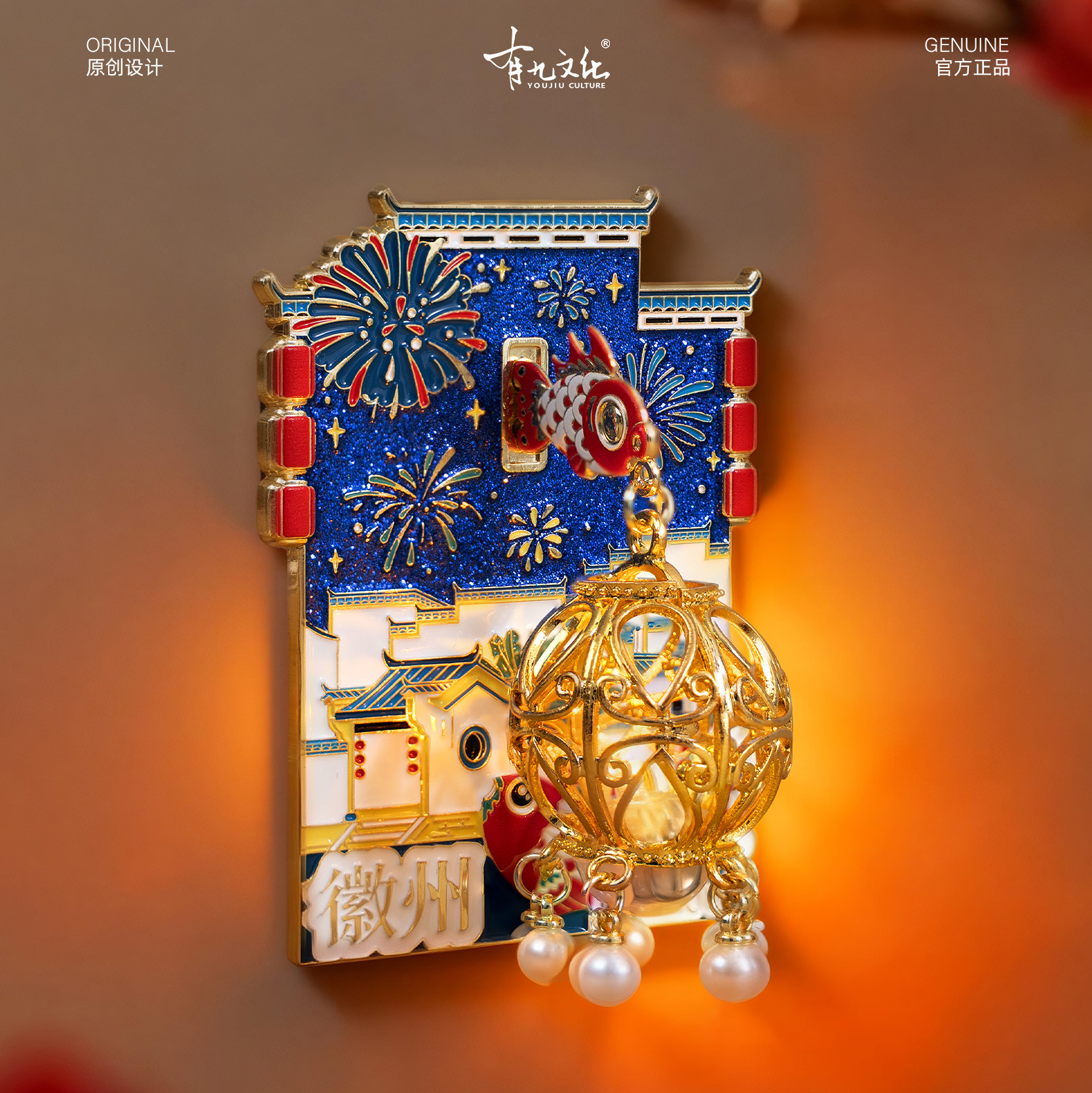 📚 有九文化徽州冰箱贴立体鱼灯文创金属发光灯笼夜灯磁贴旅游伴手礼