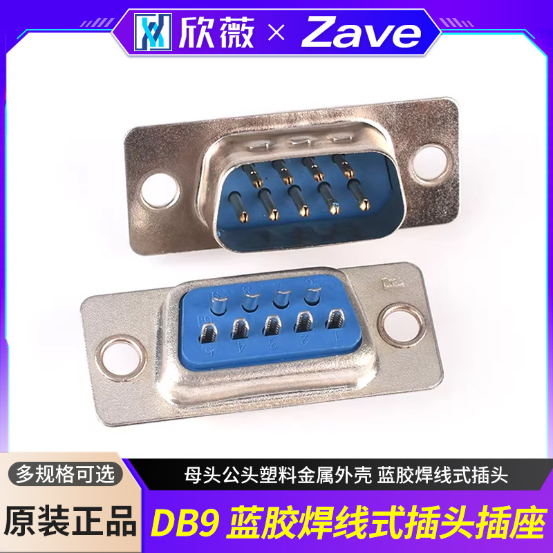 📚 DB9插头插座 母头公头塑料金属外壳 蓝胶焊线式插头