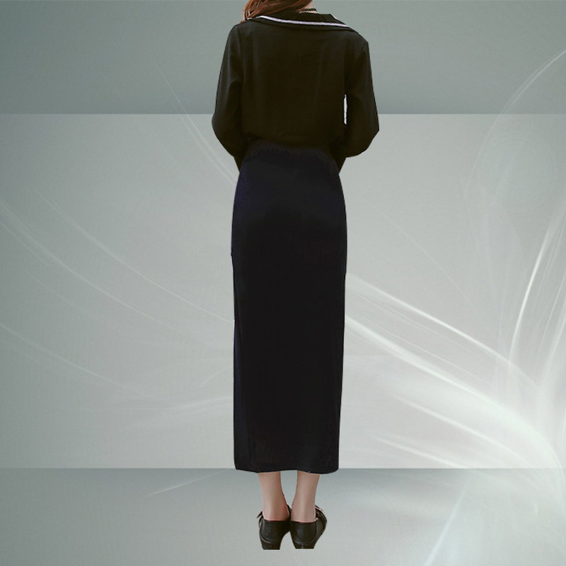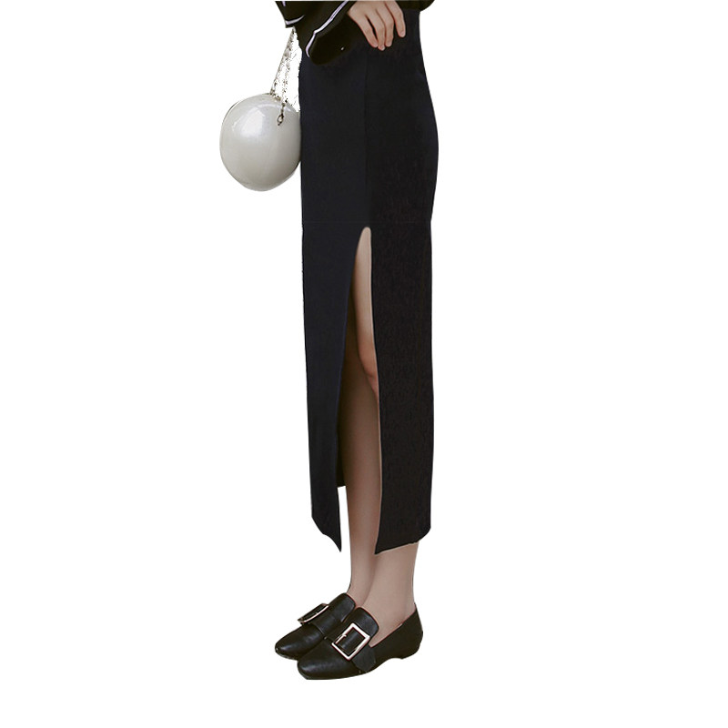 📚 黑色长裙前侧开叉半身裙运动休闲百搭松紧腰直筒高腰大码包臀裙子