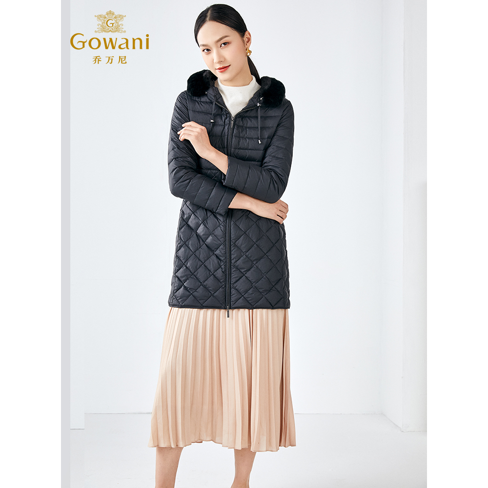 📚 乔万尼冬季新款商场同款收腰显瘦保暖抗寒中长款连帽羽绒服
