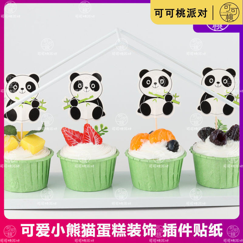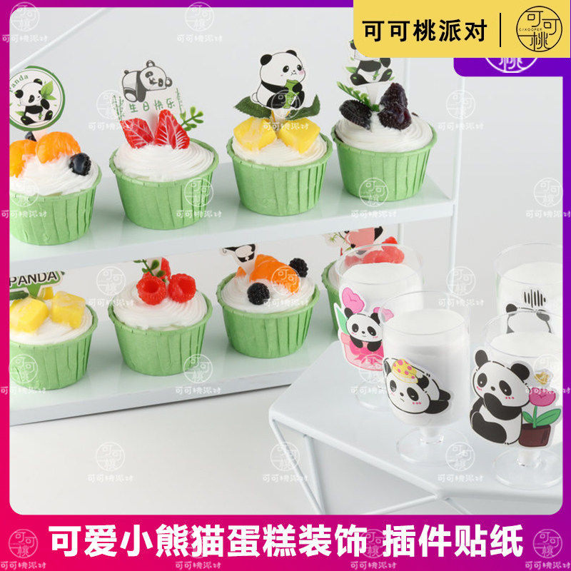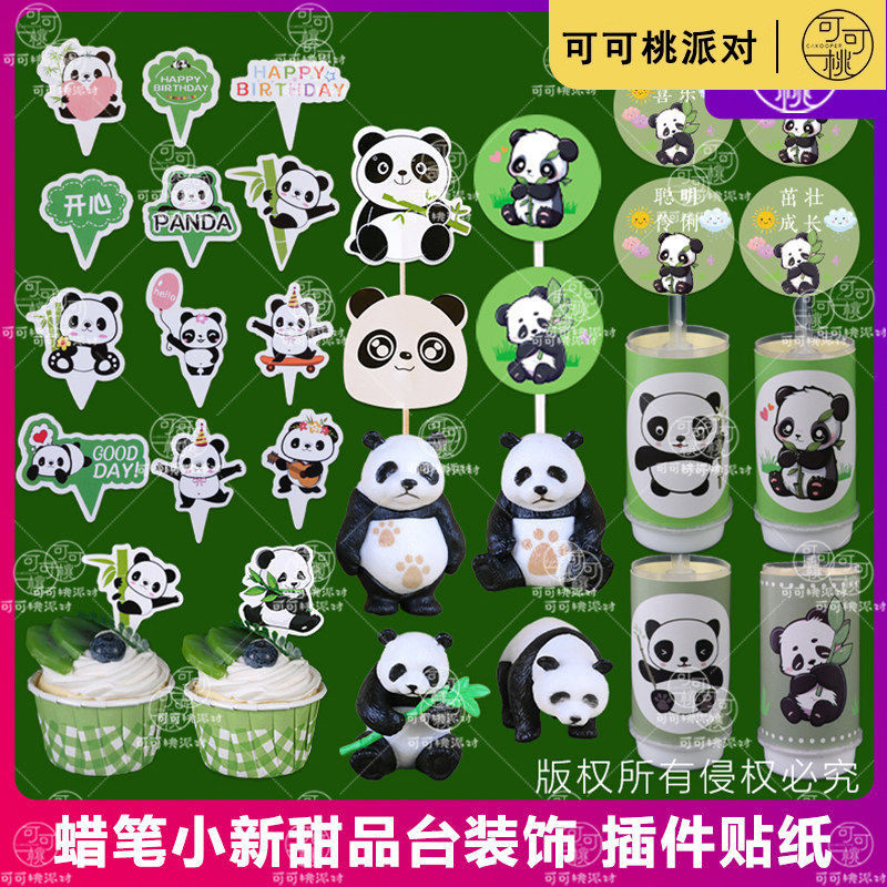 📚 园林风大熊猫主题周岁甜品台装饰布置福宝推推乐贴纸烘焙蛋糕插件