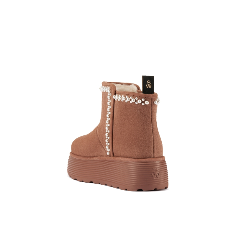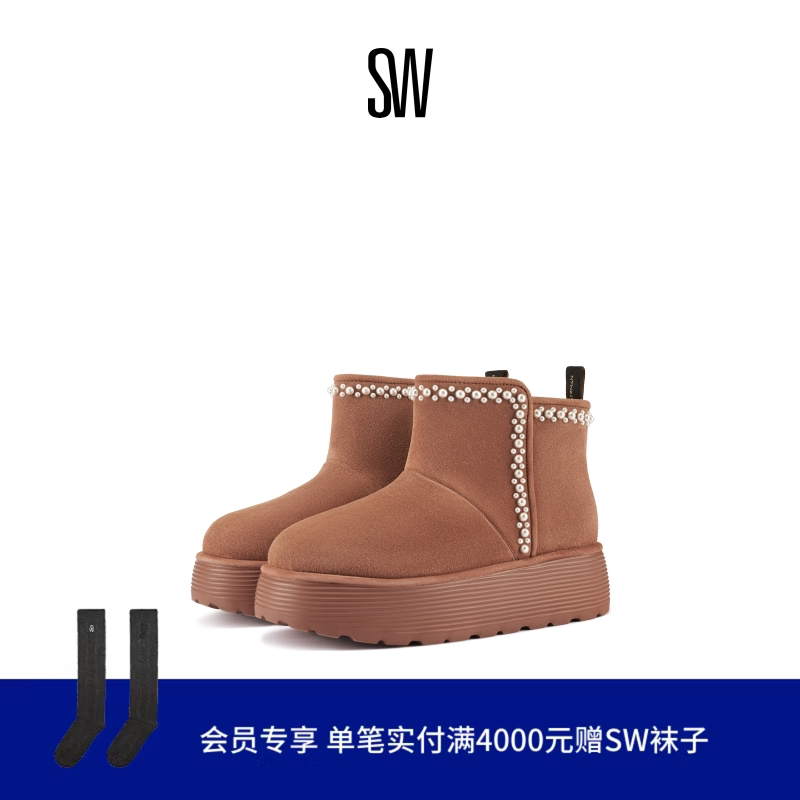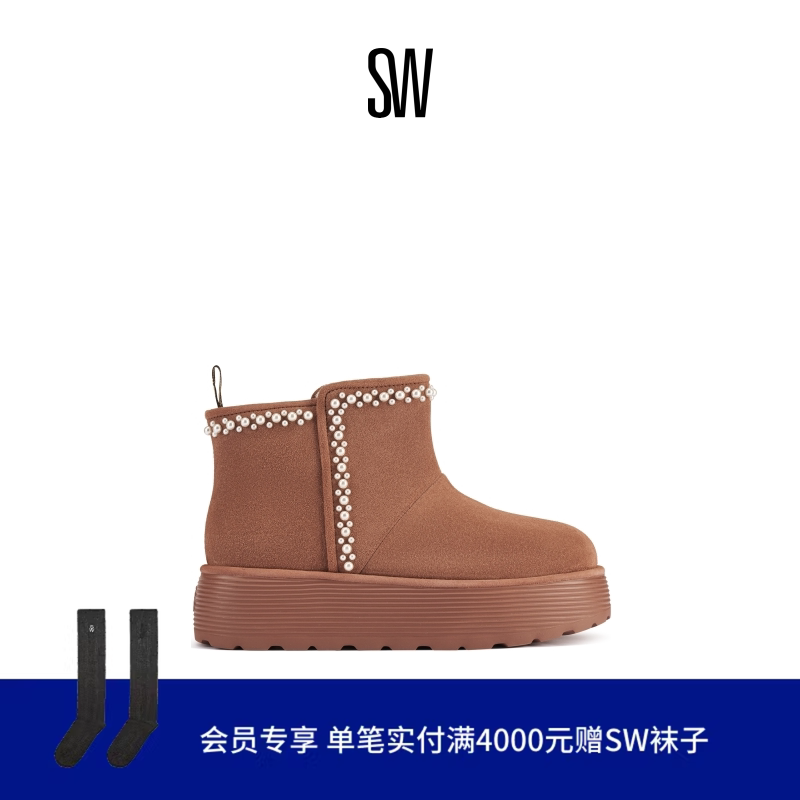 📚 SW NELLIE PEARL FLATFORM 冬季新款珍珠装饰边厚底加绒雪地靴女