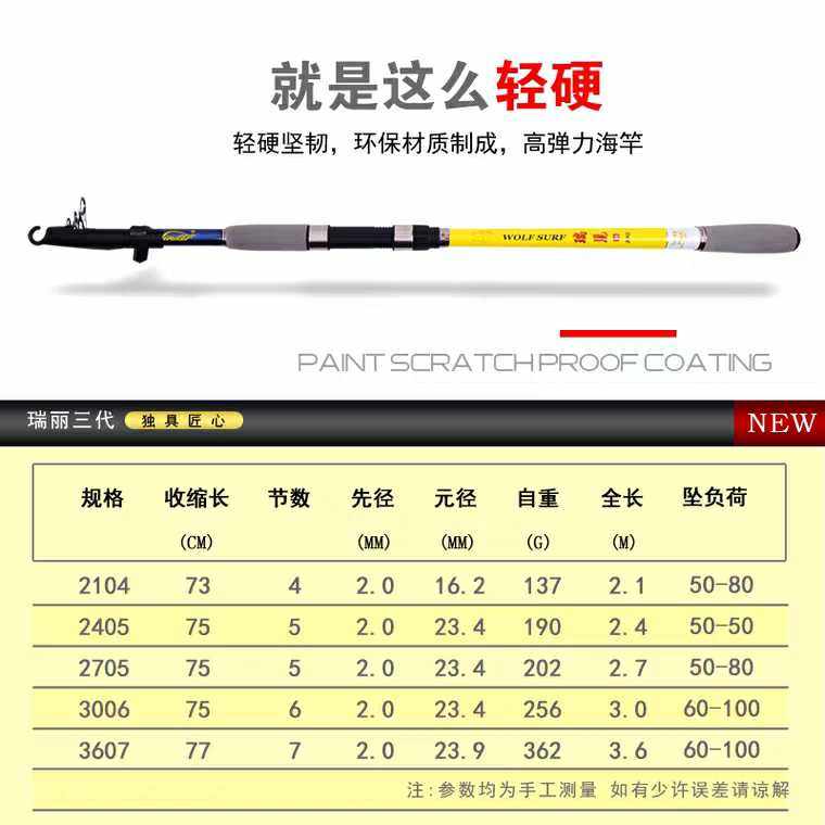 📚 狼王渔瑞丽三代2.1~3.6米超硬海竿远投竿钓竿抛竿野钓超轻