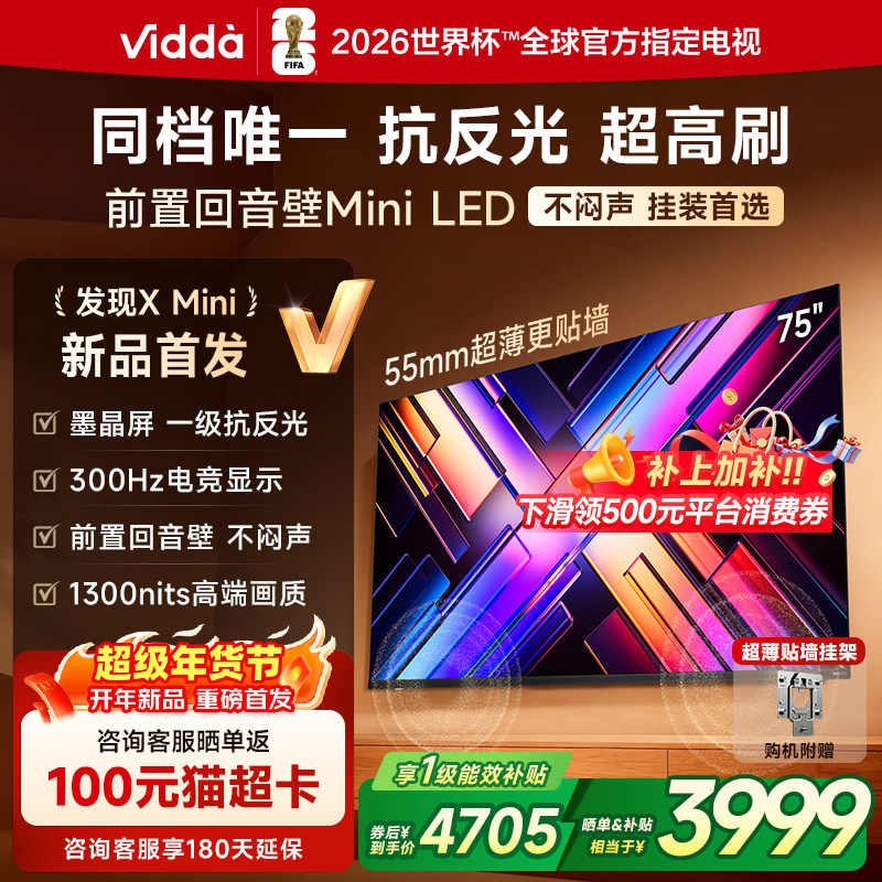 📚 Vidda 发现X Mini 海信75英寸电视机新品 前置回音壁以旧换新补贴