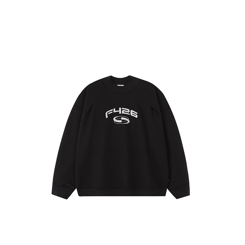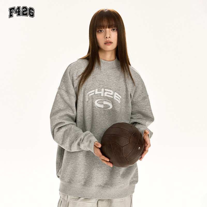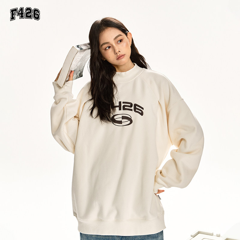 📚 【F426奥莱店】国潮牌情侣美式街头宽松休闲半高领分割圆领卫衣
