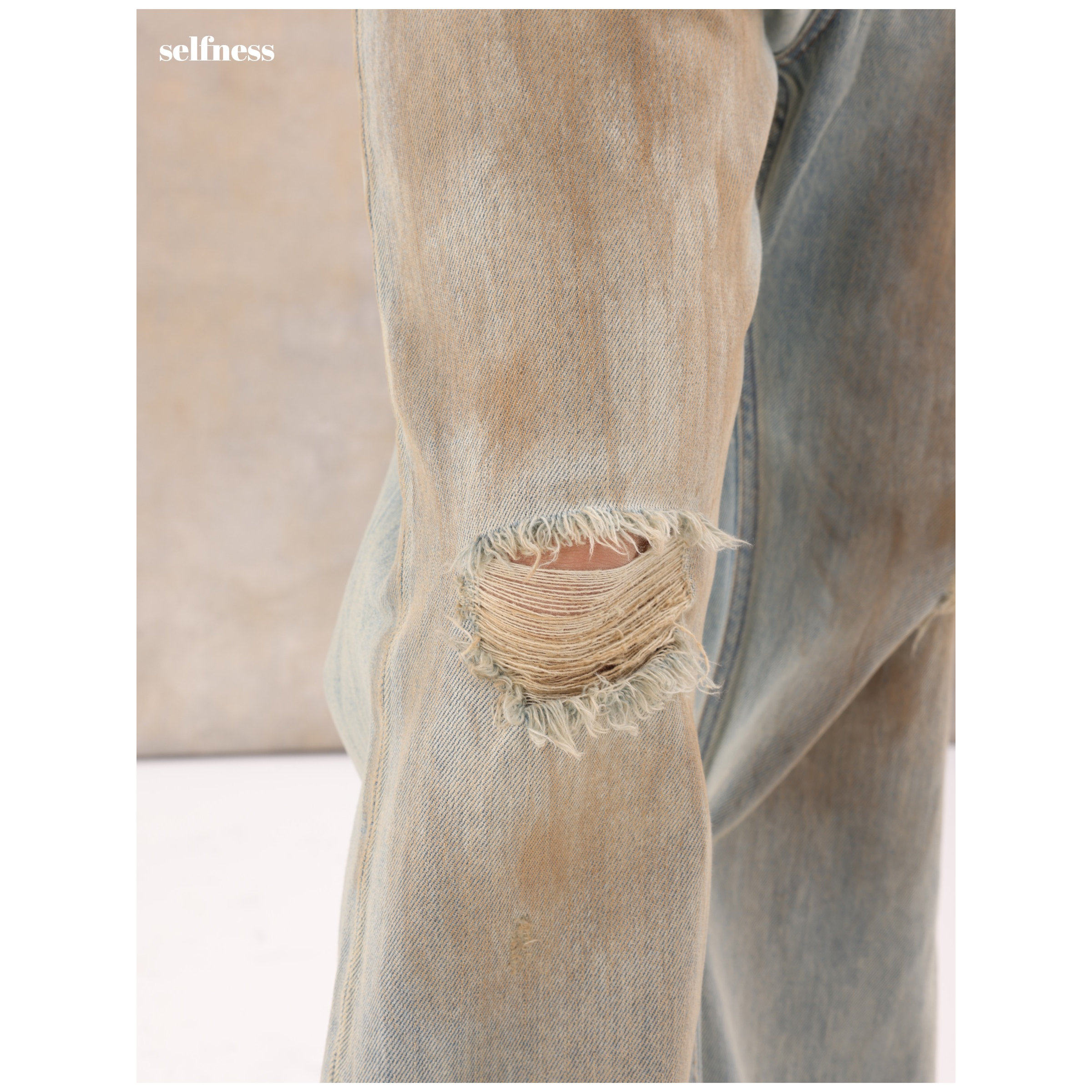 📚 Selfness Vintage 2021M复古摸脏破洞宽松直筒阔腿微喇做旧牛仔裤