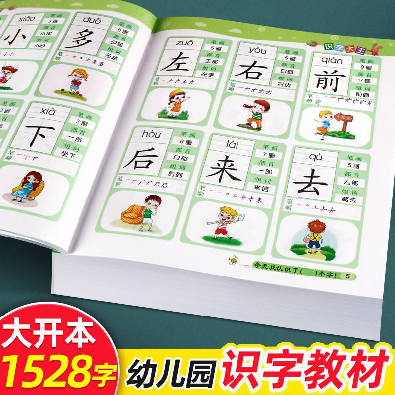 📚 儿童学前看图识字书3-6岁幼儿园1528字 识字大王注拼音版 一年级学前班幼小衔接幼升小教材语文学习早教卡3-4-5-6-7岁宝宝学汉字书