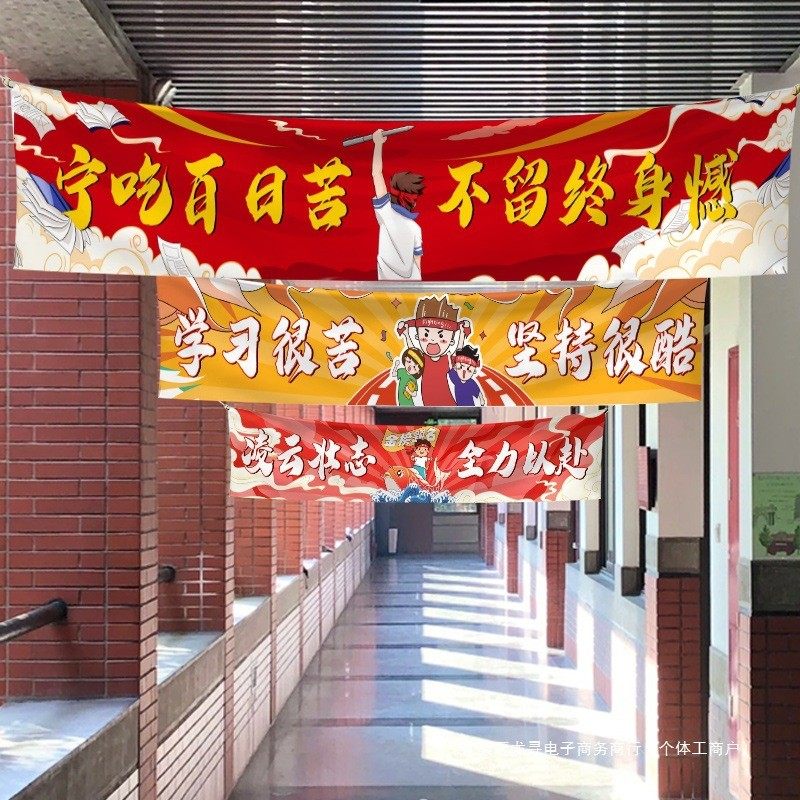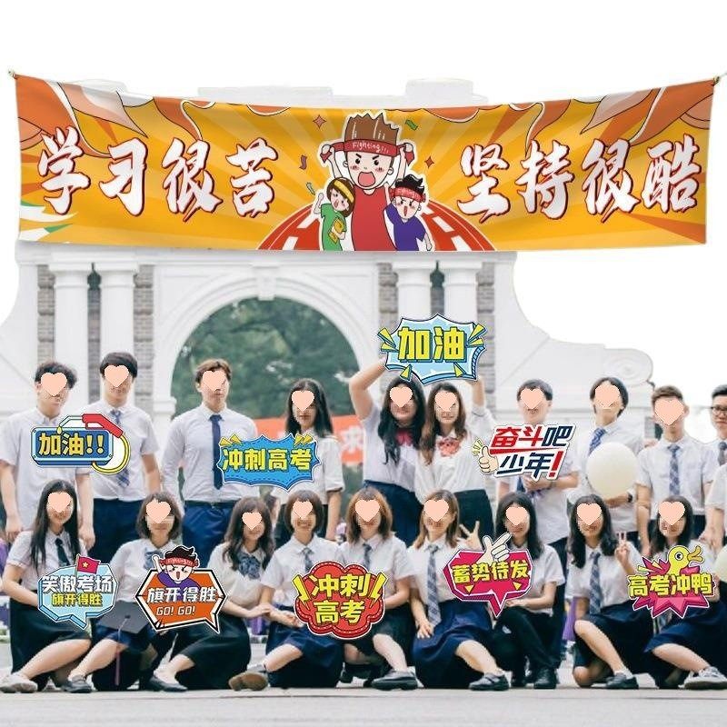 📚 百日誓师大会横幅中考高考冲刺金榜题名条幅励志标语kt板手举牌猫