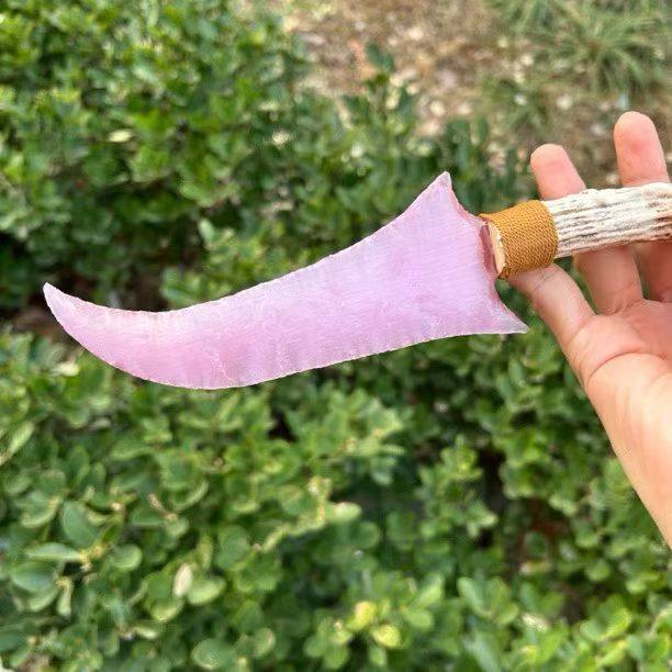 📚 打制石器纯手工制作蛋粉猫眼异形刀游戏周边生日礼物鹿角刀柄把玩