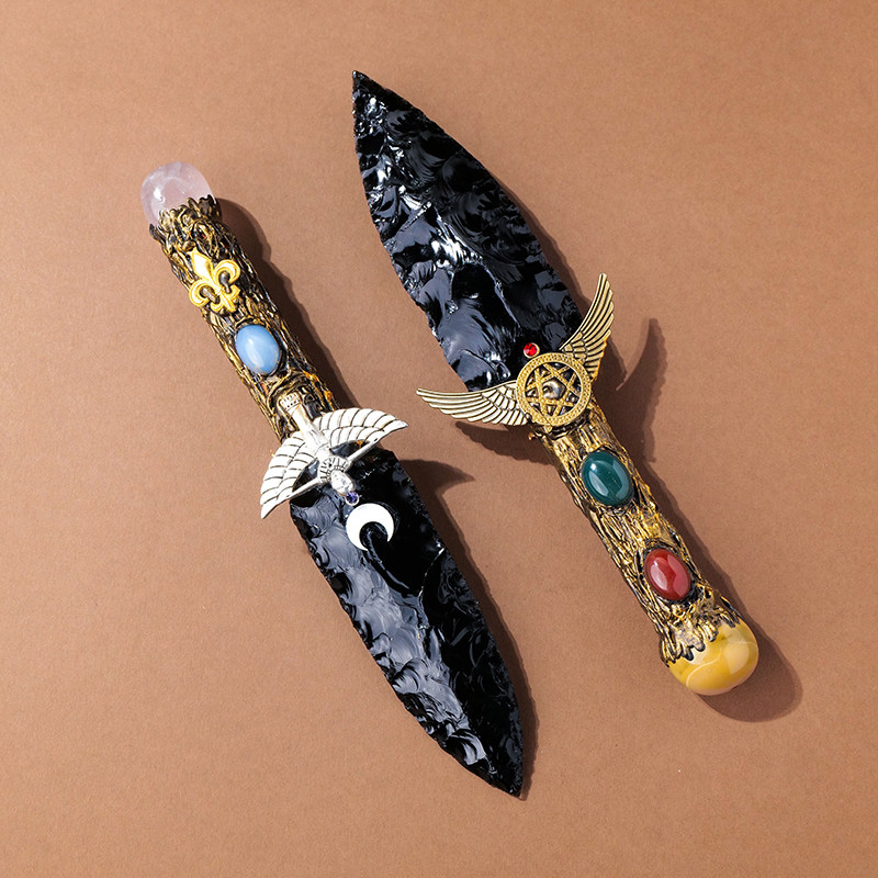 #天然水晶黑曜石 #手工打造石头刀 #摆件收藏必备 #神秘魅力宝藏