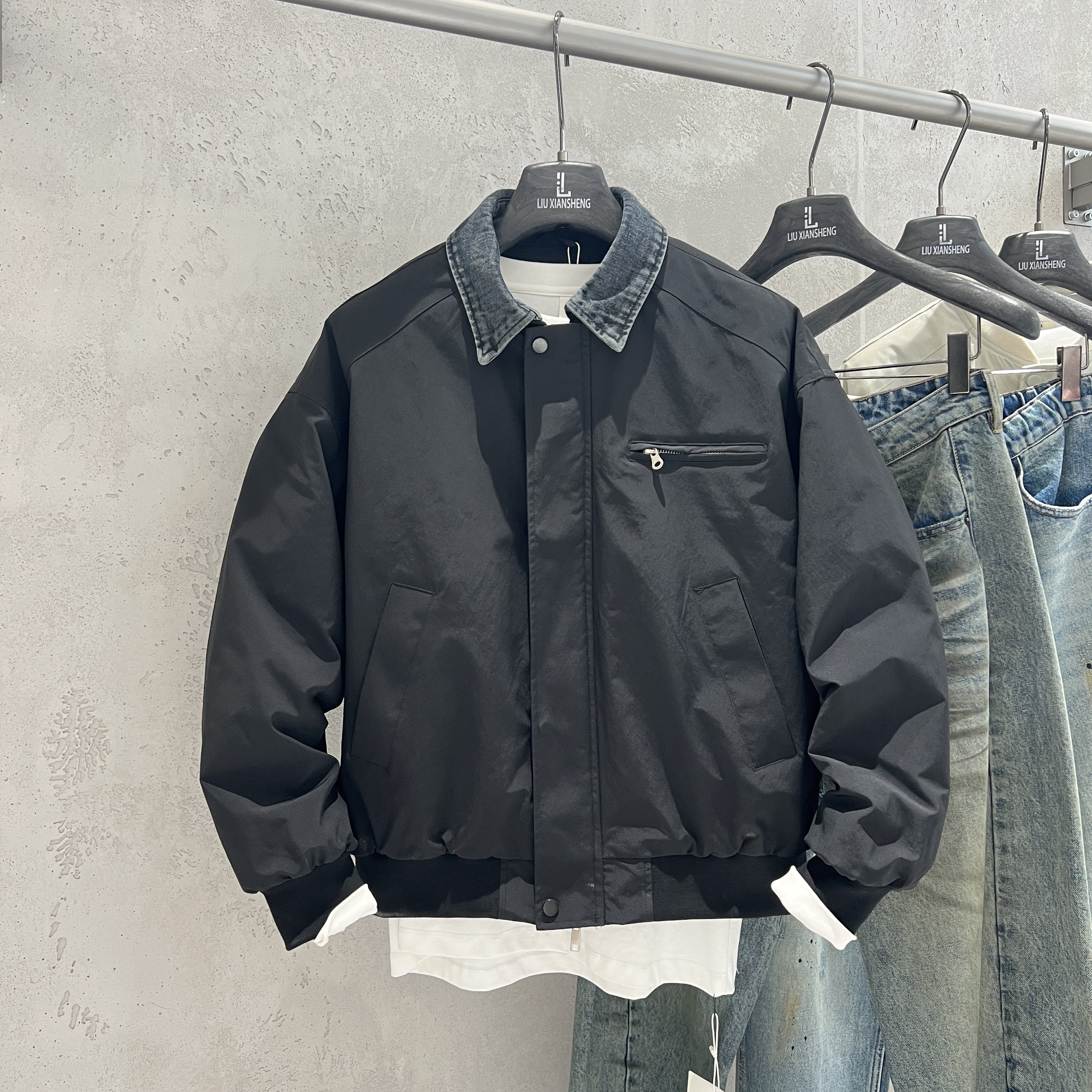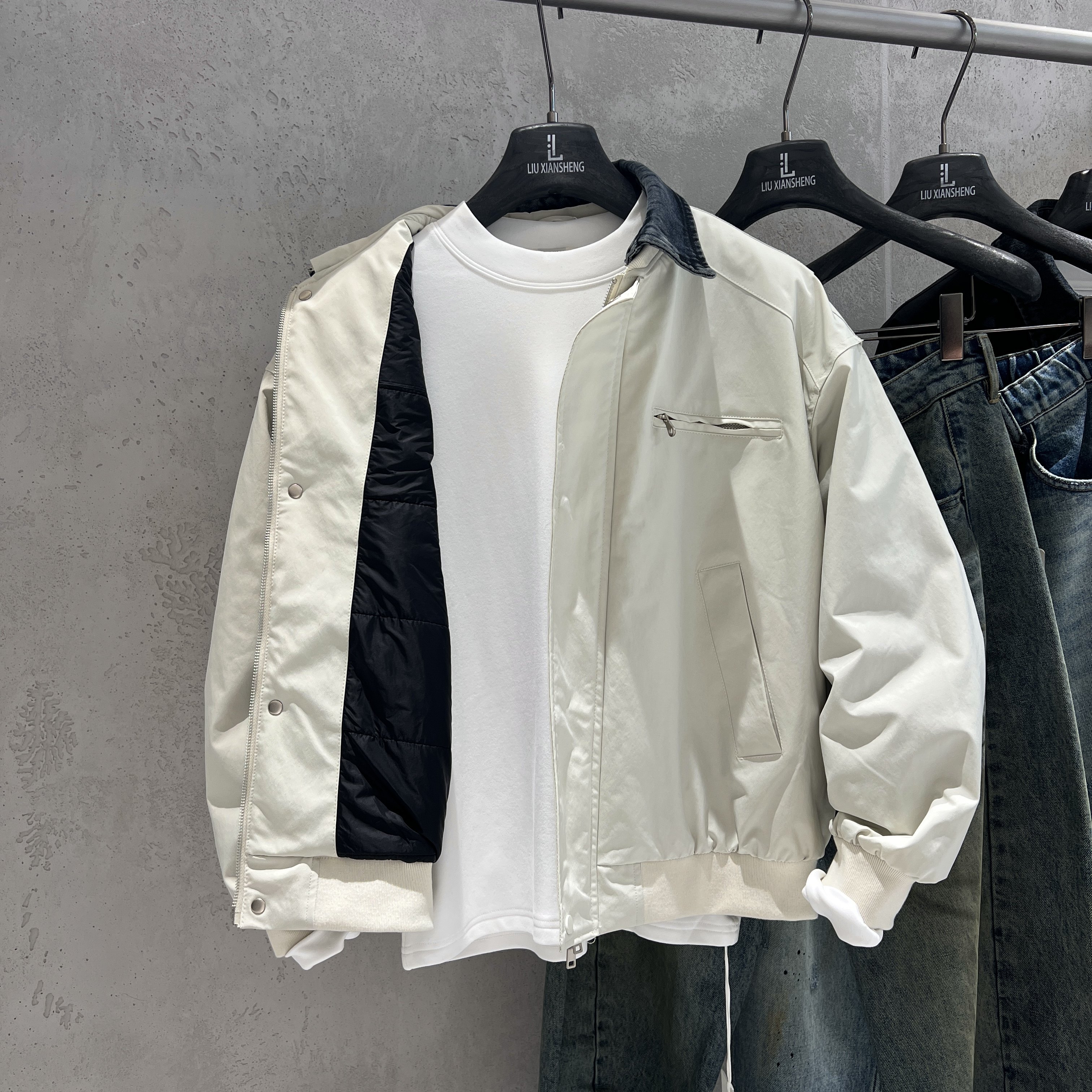 📚 男装2025秋冬季二棉外套拼接可拆卸撞色假两件翻领棉衣休闲夹克潮