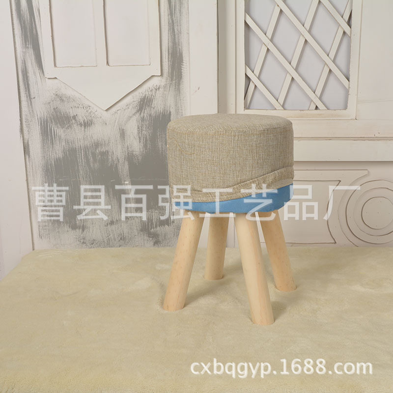 📚 家用沙发凳 试衣间凳子 时尚木质布艺换鞋凳 创意圆凳高45cm