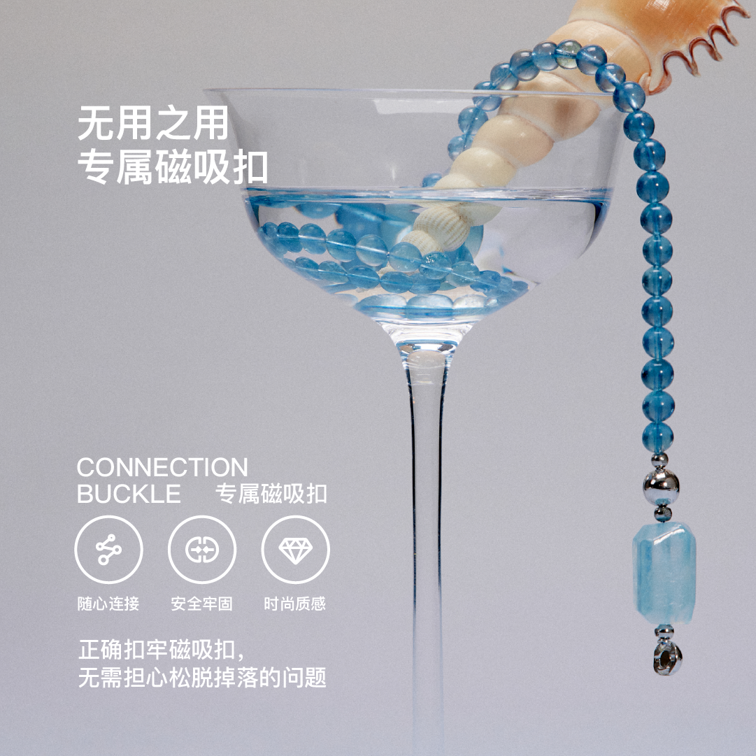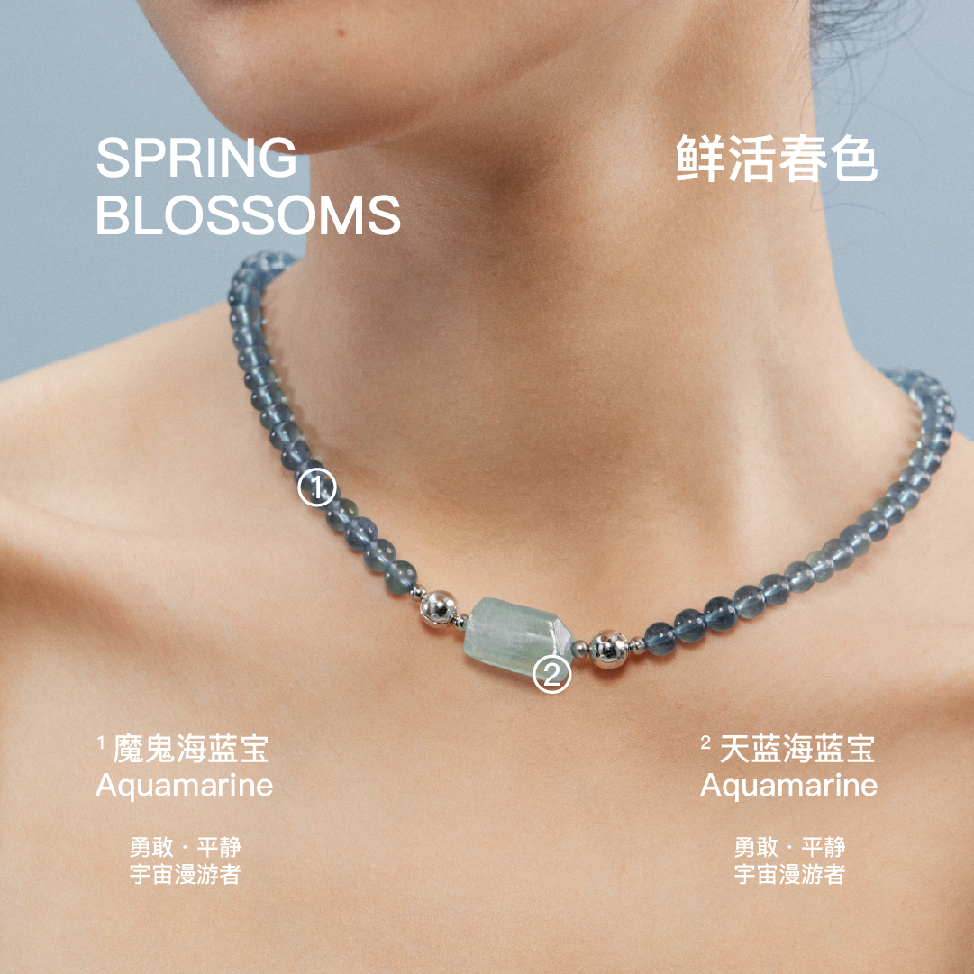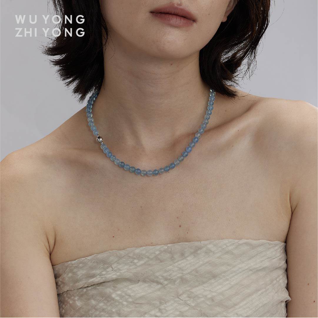 📚 无用之用「启程山海」天然海蓝宝圆珠项链魔鬼蓝原创轻奢礼物女款