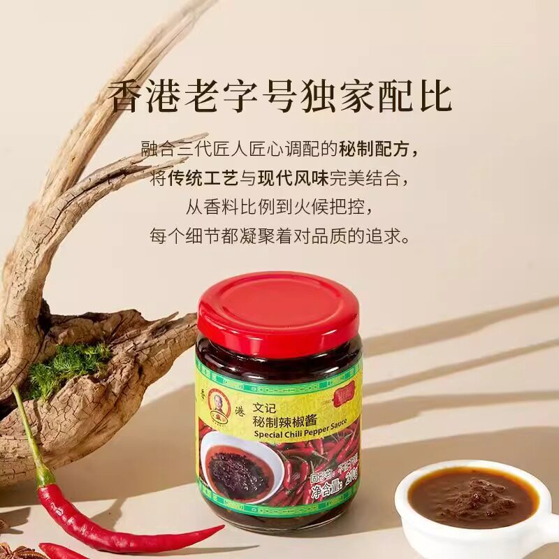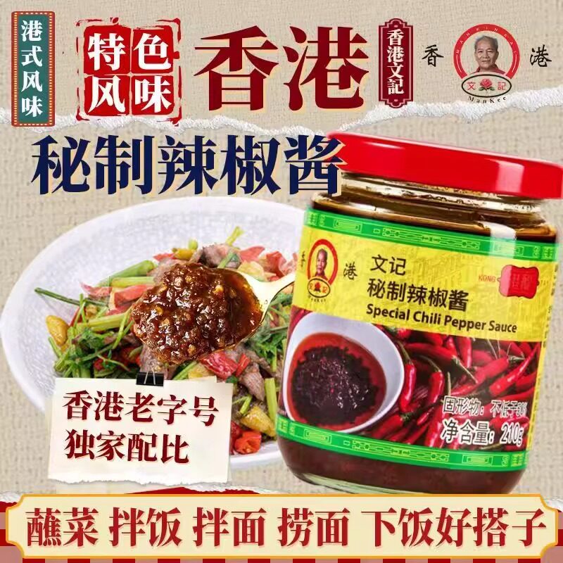 📚 香港文记辣椒酱港味蒜蓉花生芝麻风味茶餐厅同款拌面拌饭调味酱