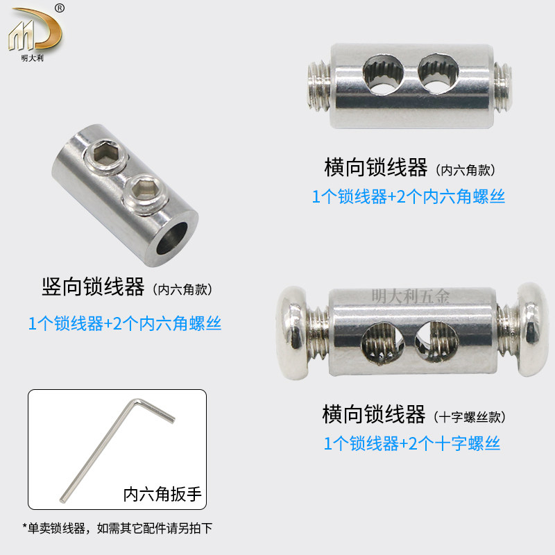 📚 横向双孔锁线器 钢丝绳卡紧器紧锁扣卡扣卡头可锁2-3mm加粗加厚