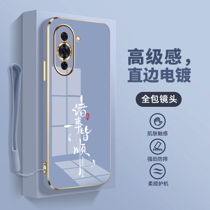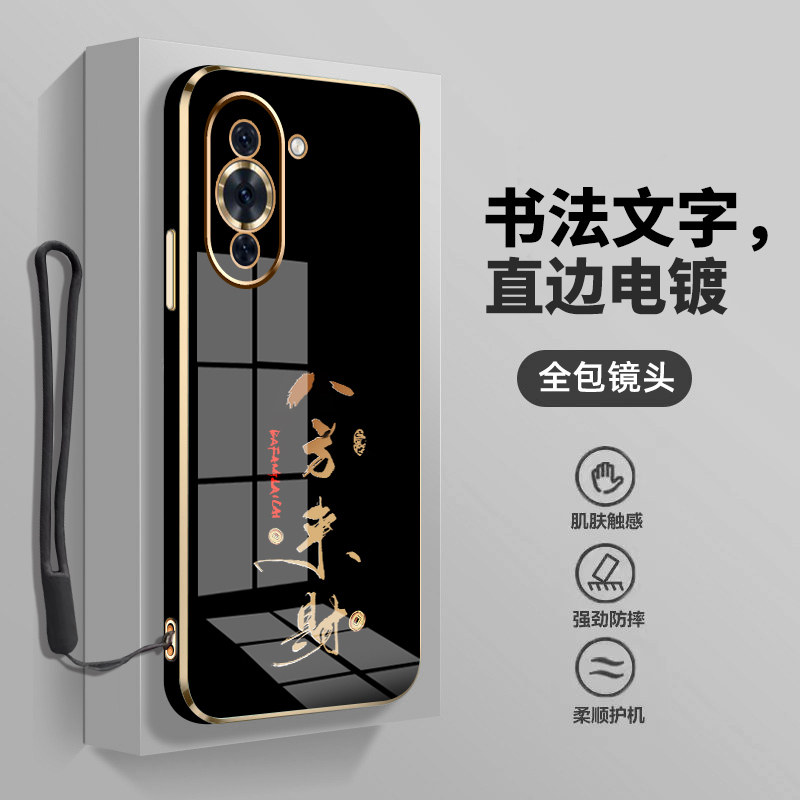 📚 高级感电镀适用华为nova10pro手机壳男女新款文字nova10保护壳套中国风nova10se镜头全包防摔直边软壳时尚