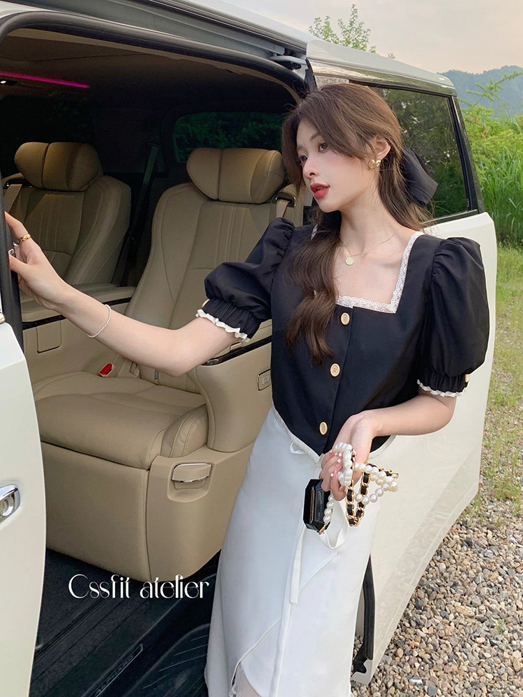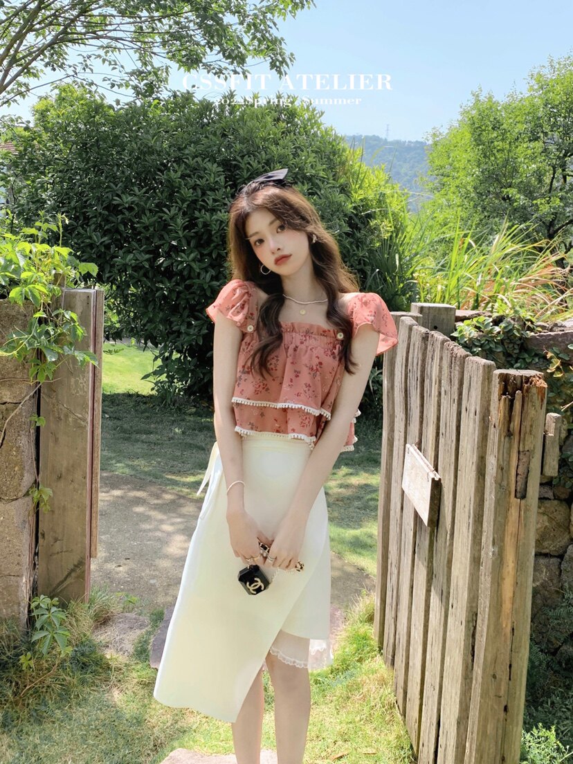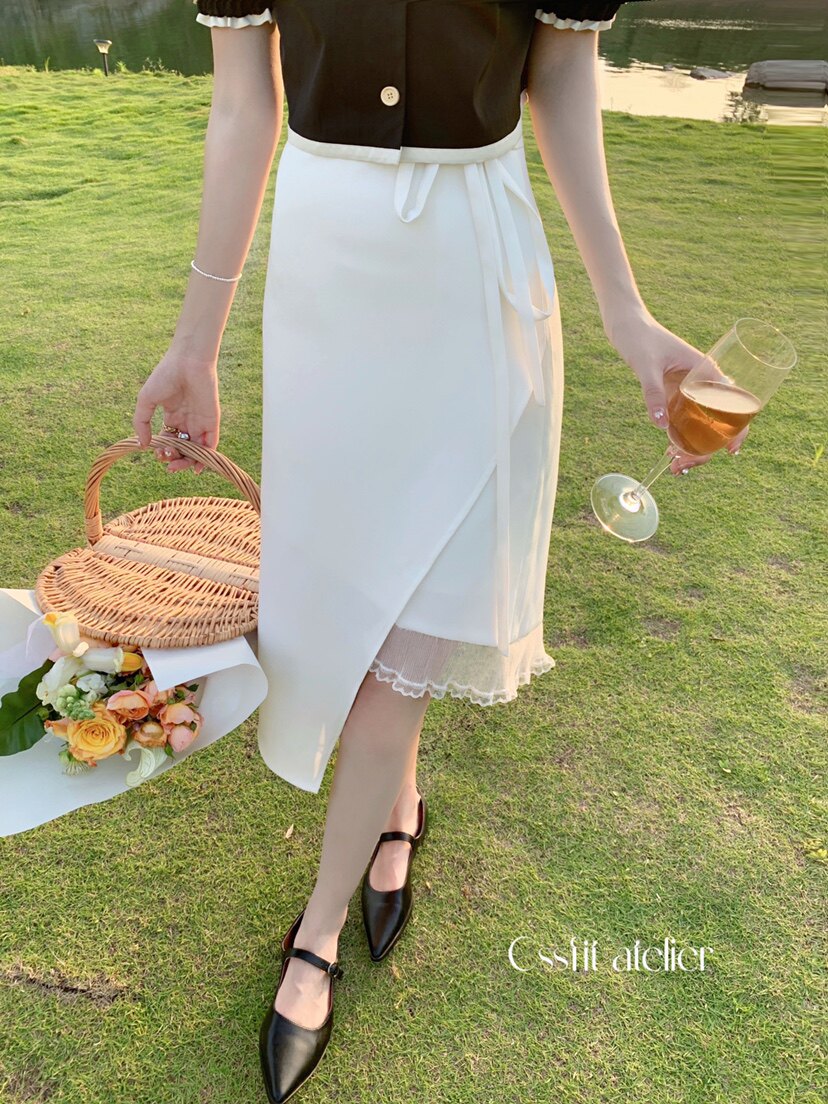 📚 【迟伞伞】白色蕾丝拼接半身裙女夏高腰不规则设计半裙