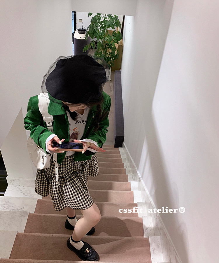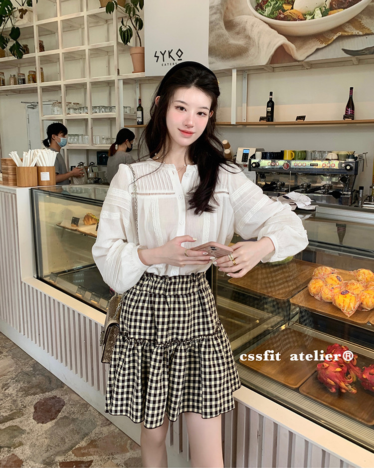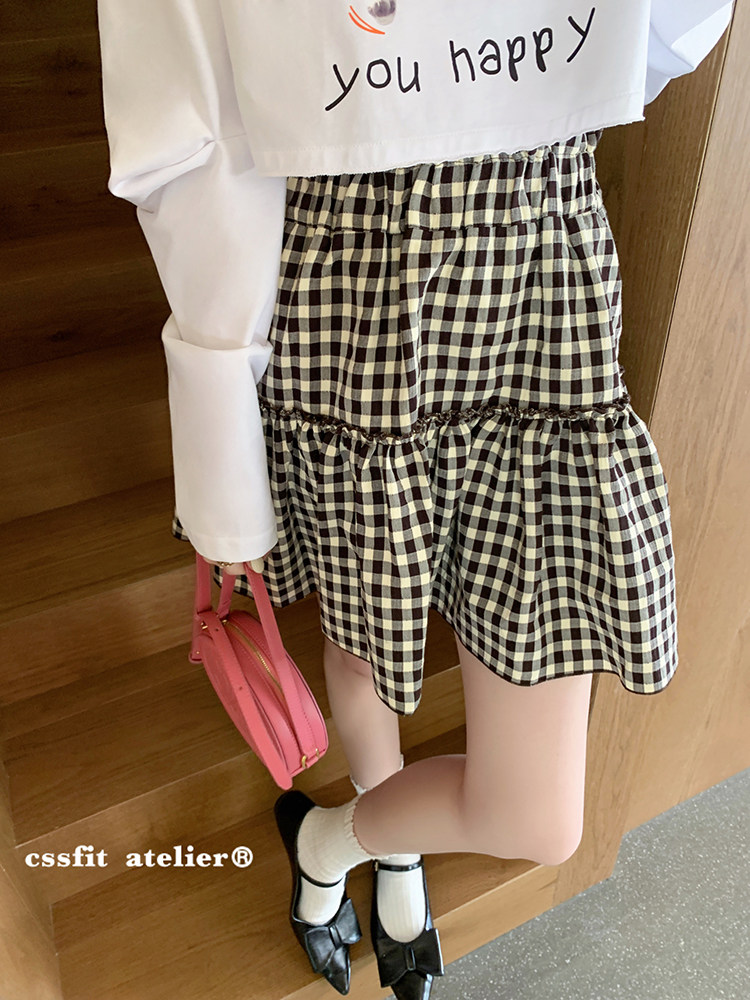 📚 迟伞伞 我的复古情怀 法式百搭格纹小蛋糕半裙松紧腰褶皱半身裙