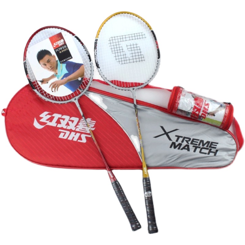 📚 红双喜情侣羽毛球拍正品2支家庭用好手感铝合金1021/270/300 3020
