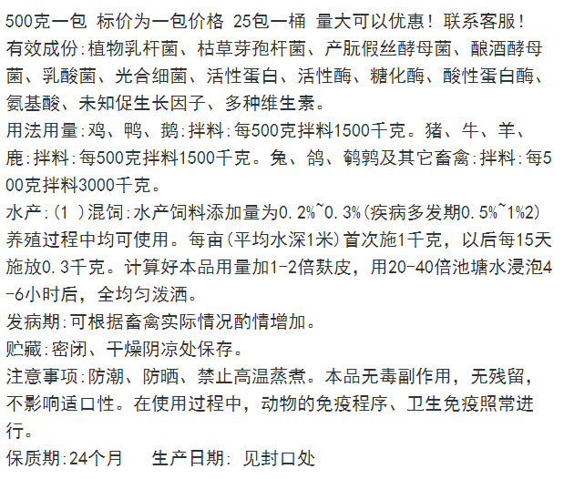 📚 兽用加酶益生素 益生菌饲料添加剂 猪鸡鸭牛羊兔鸽鹌鹑促消化