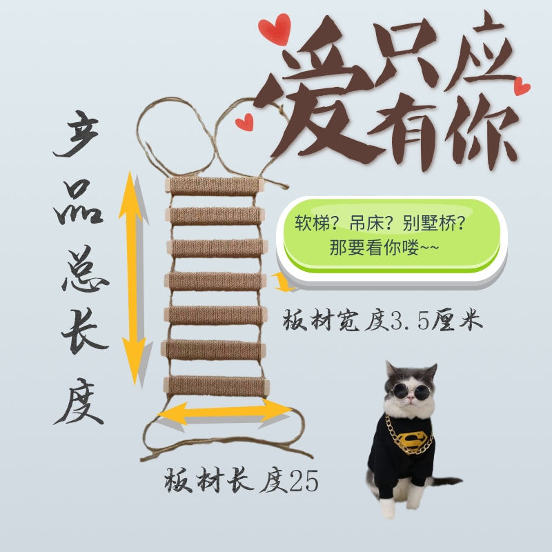 📚 实木猫绳梯 爬架自制配件梯子猫窝架爬麻绳软梯猫吊桥猫咪猫爬架