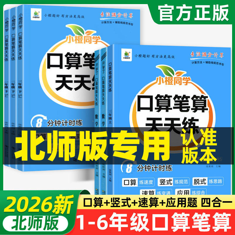 📚 北师大版口算笔算天天练小橙同学一年级二年级三年级四五六上册下册全横式竖式专项训练同步练习册人教版数学思维训练口算题卡开学