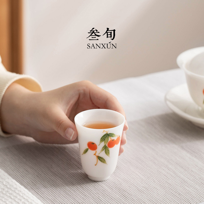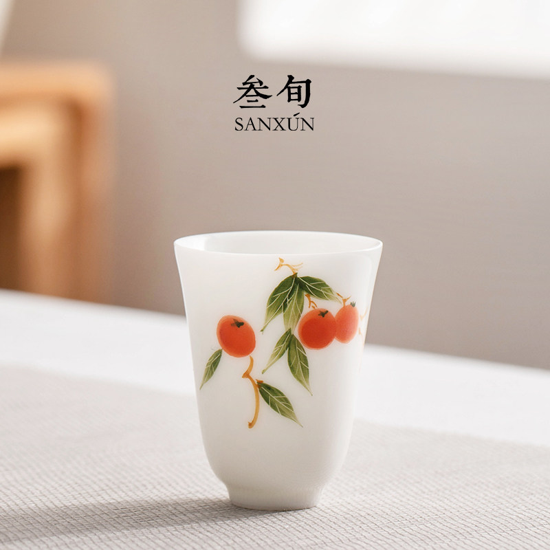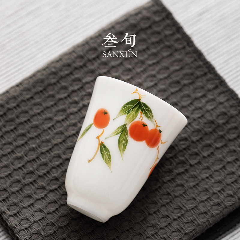 📚 叁旬手绘柿柿如意闻香杯茶杯主人杯女单杯功夫茶杯高档陶瓷品茗杯