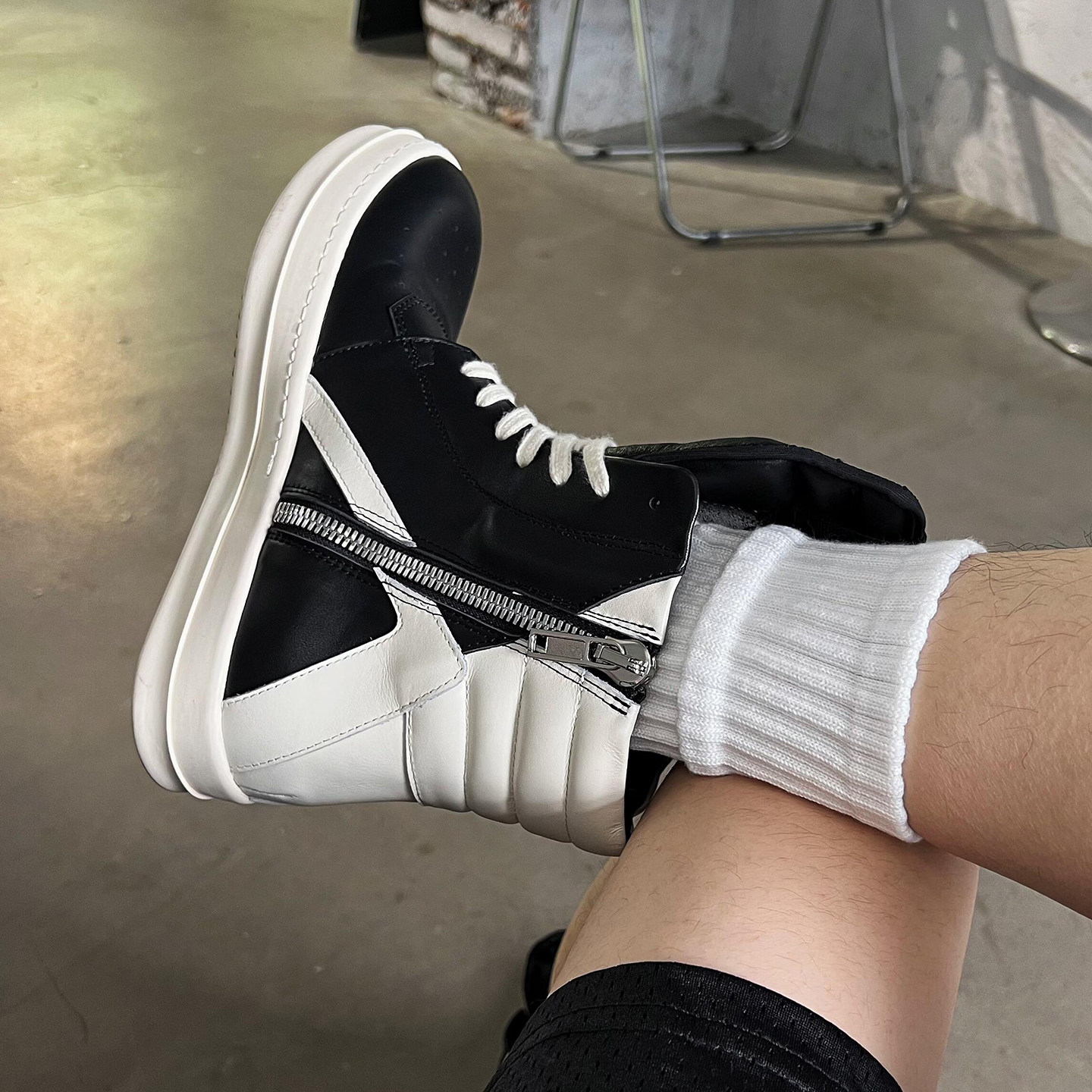 📚 RO倒三角高帮鞋休闲马丁靴男暗黑风宽鞋带厚底板鞋增高奶香短靴女