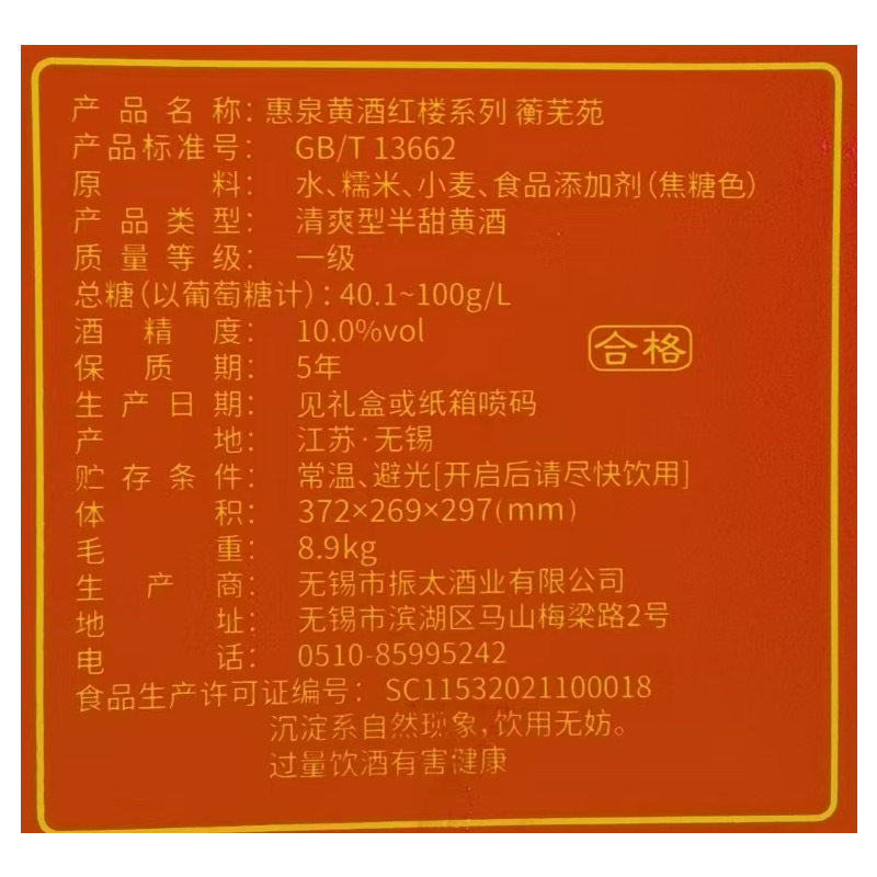 📚 惠泉红楼12系列蘅芜苑/潇湘馆 爽型半甜/半干黄酒礼盒装节日拜访