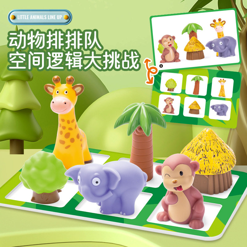 📚 动物排排队儿童益智软胶玩具空间逻辑思维训练桌游幼儿园早教认知