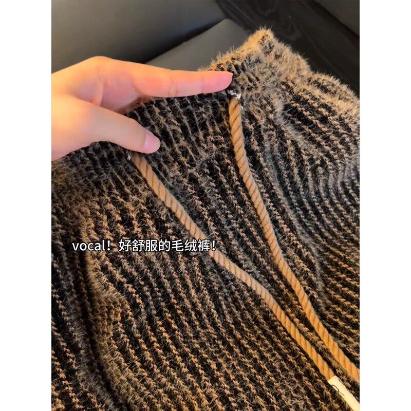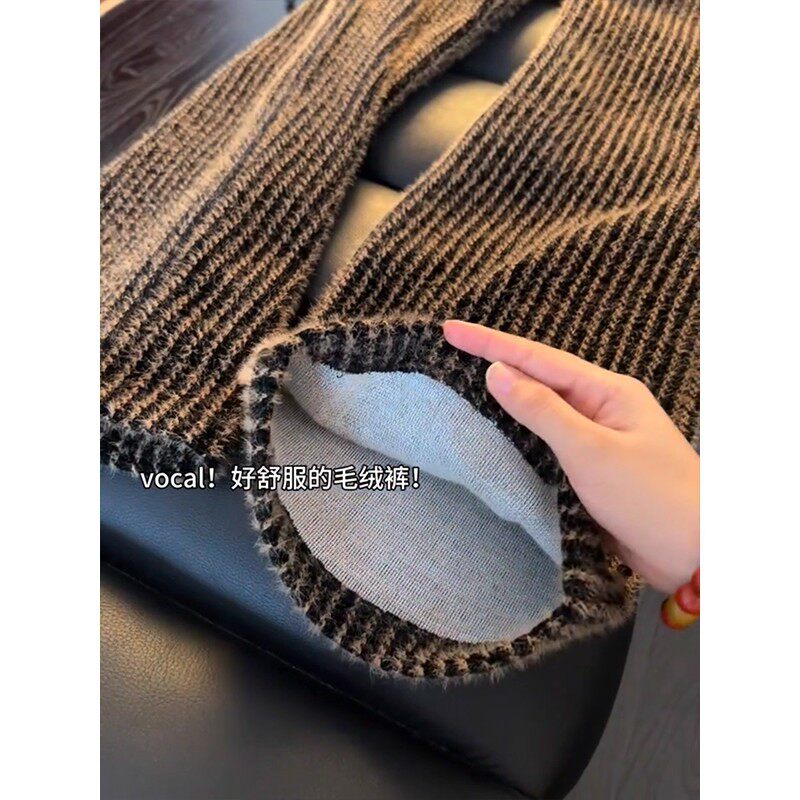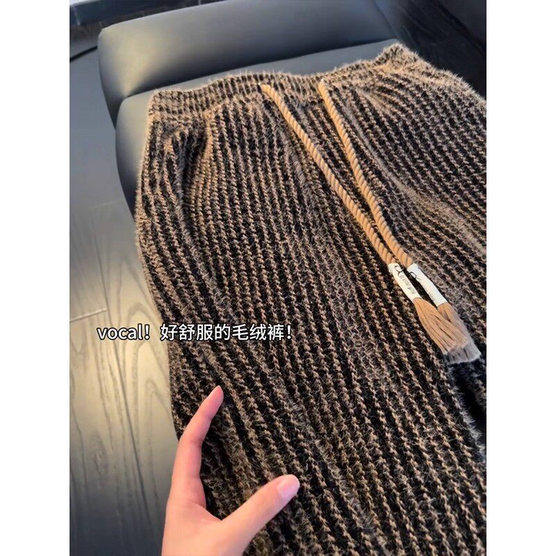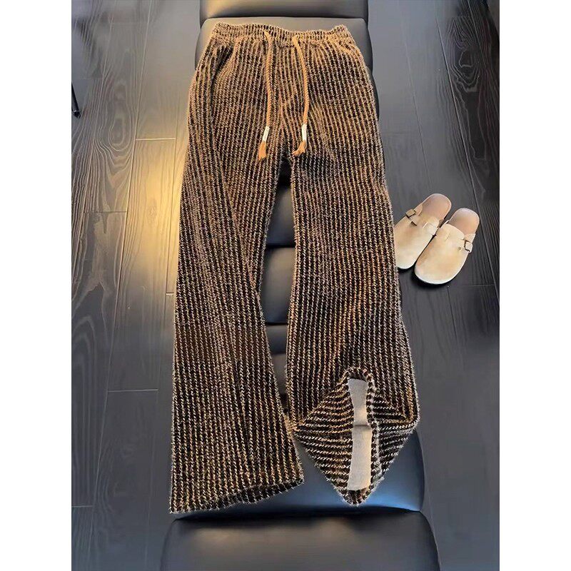 📚 特大码300斤咖色条纹灯芯绒针织秋冬裤子男款垂感休闲卫裤直筒裤2