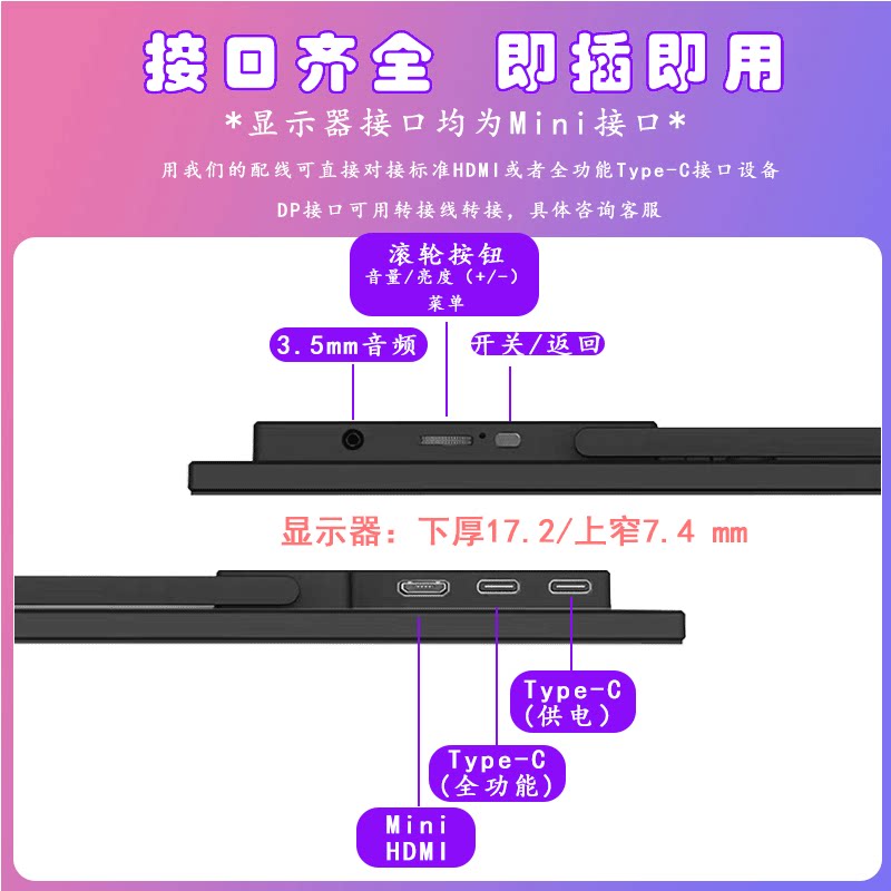 📚 便携显示器13.5/14/15.6寸2K144HZ电脑扩展IPS副屏PS5/Switch投屏