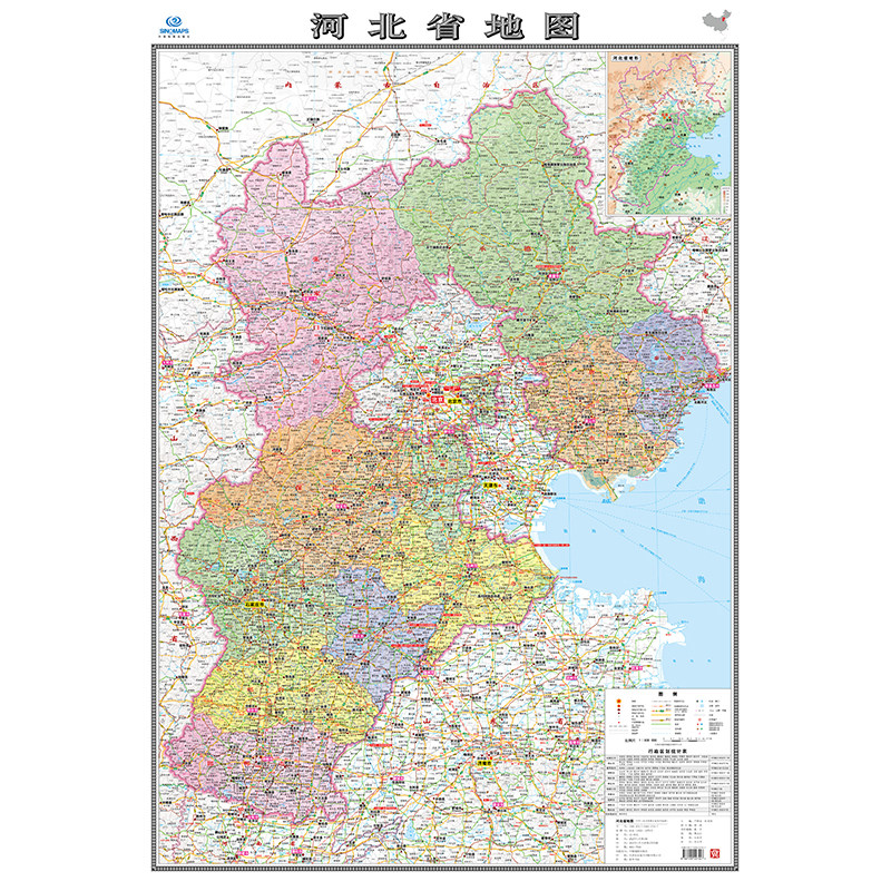 📚 全新升级 河北省地图 大比例尺展开1.068米*0.749米 政区地形交通路网旅游景点出行规划 覆膜耐折折贴两用